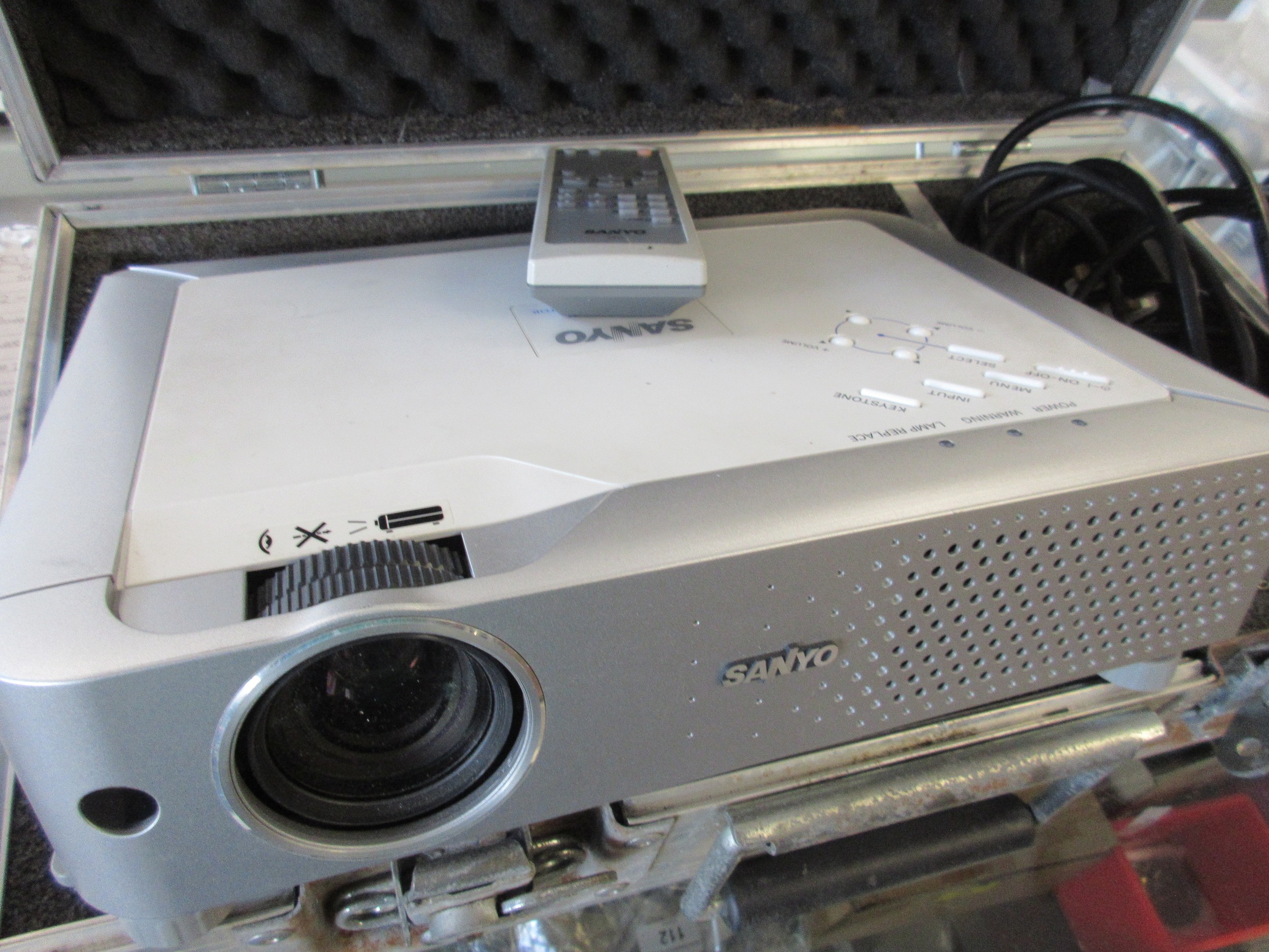 A Sanyo Pro Xtra X multiverse projector model PLC-XU74, powers on, lamp replace lamp NOT lit, no batteries in remote so not tested further. Supplied with cables, remote and heavy duty flight case. Good cosmetic condition.