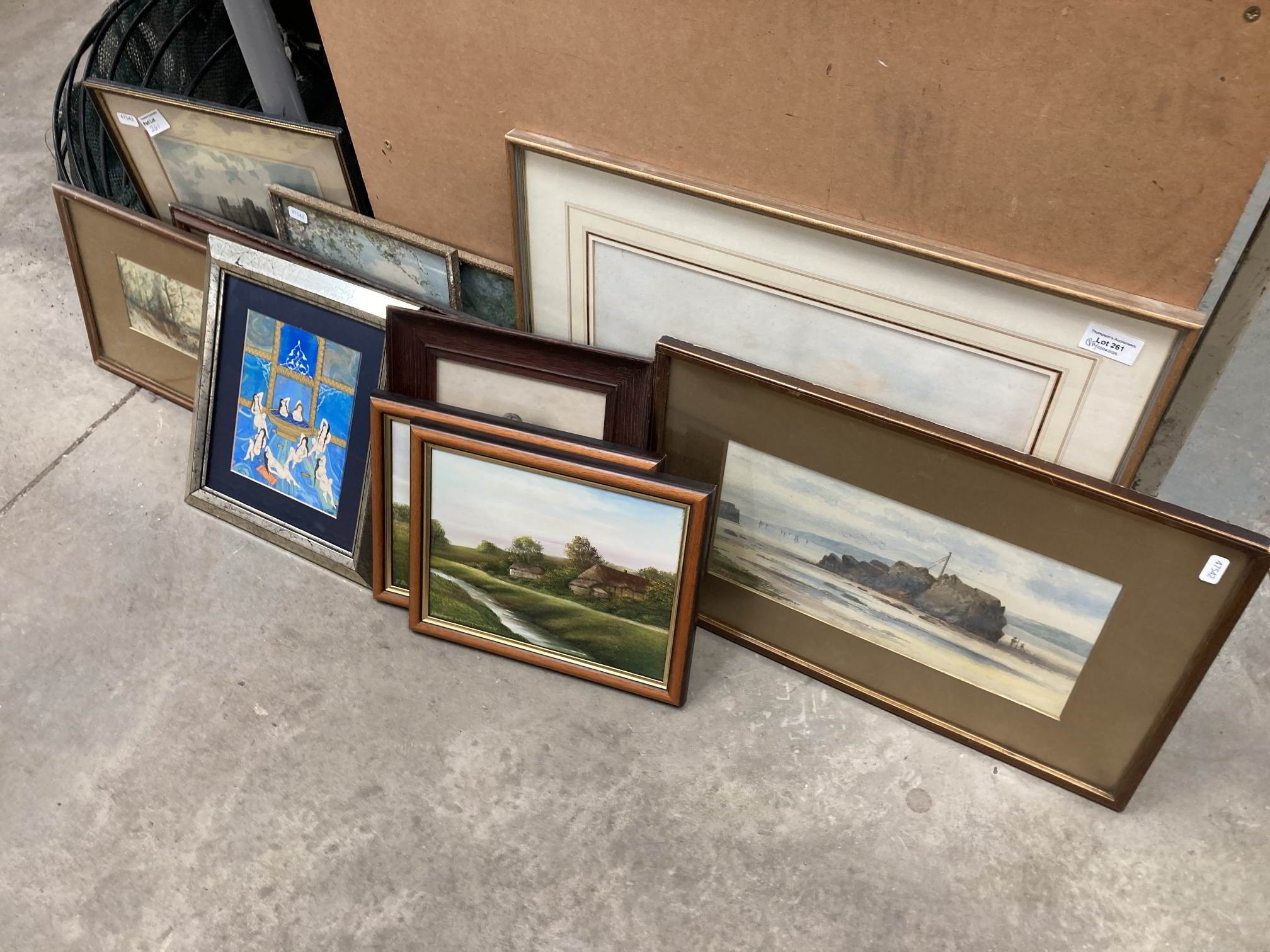 Assorted framed pictures, prints, watercolours including 'Love Inquest'