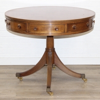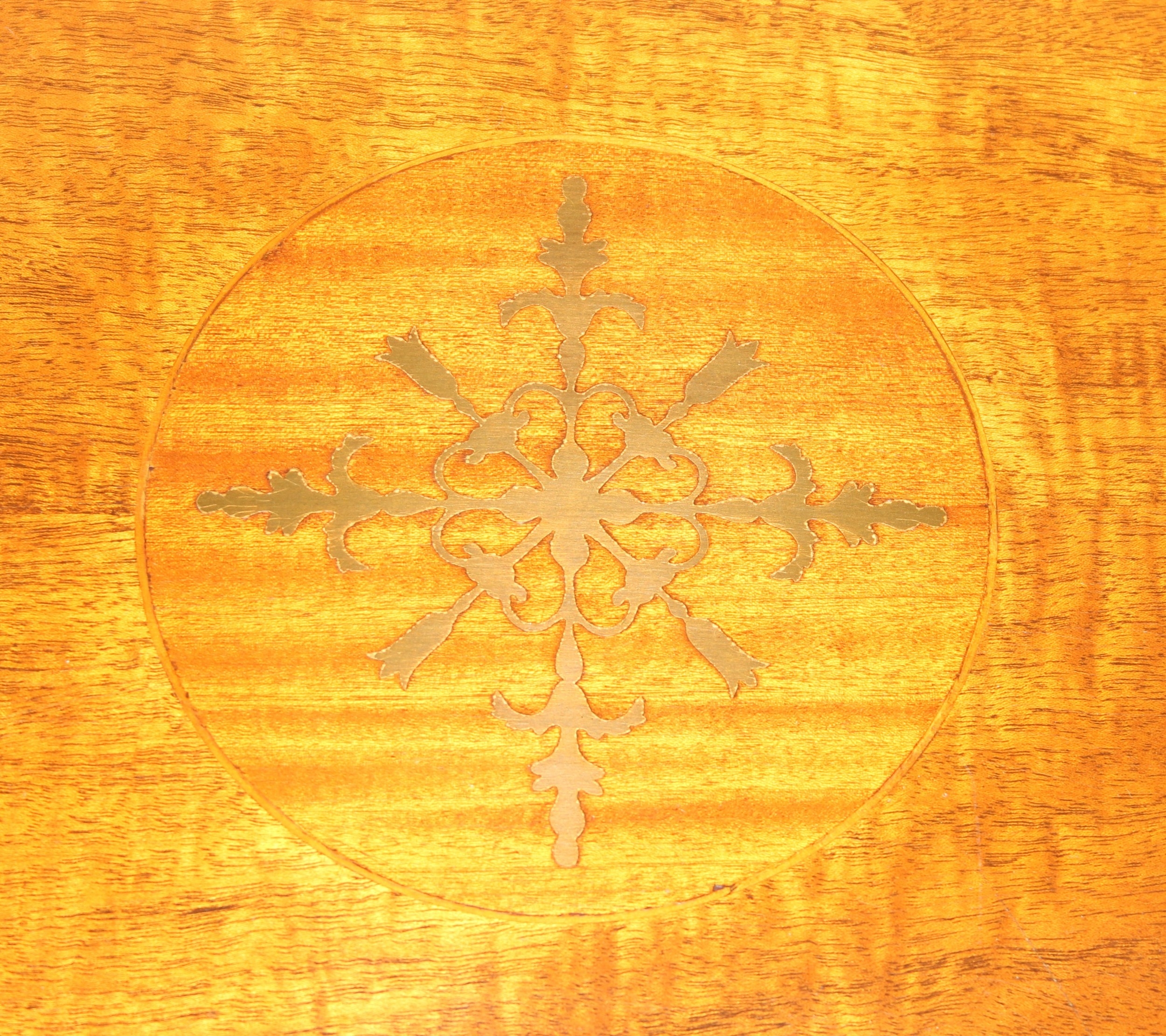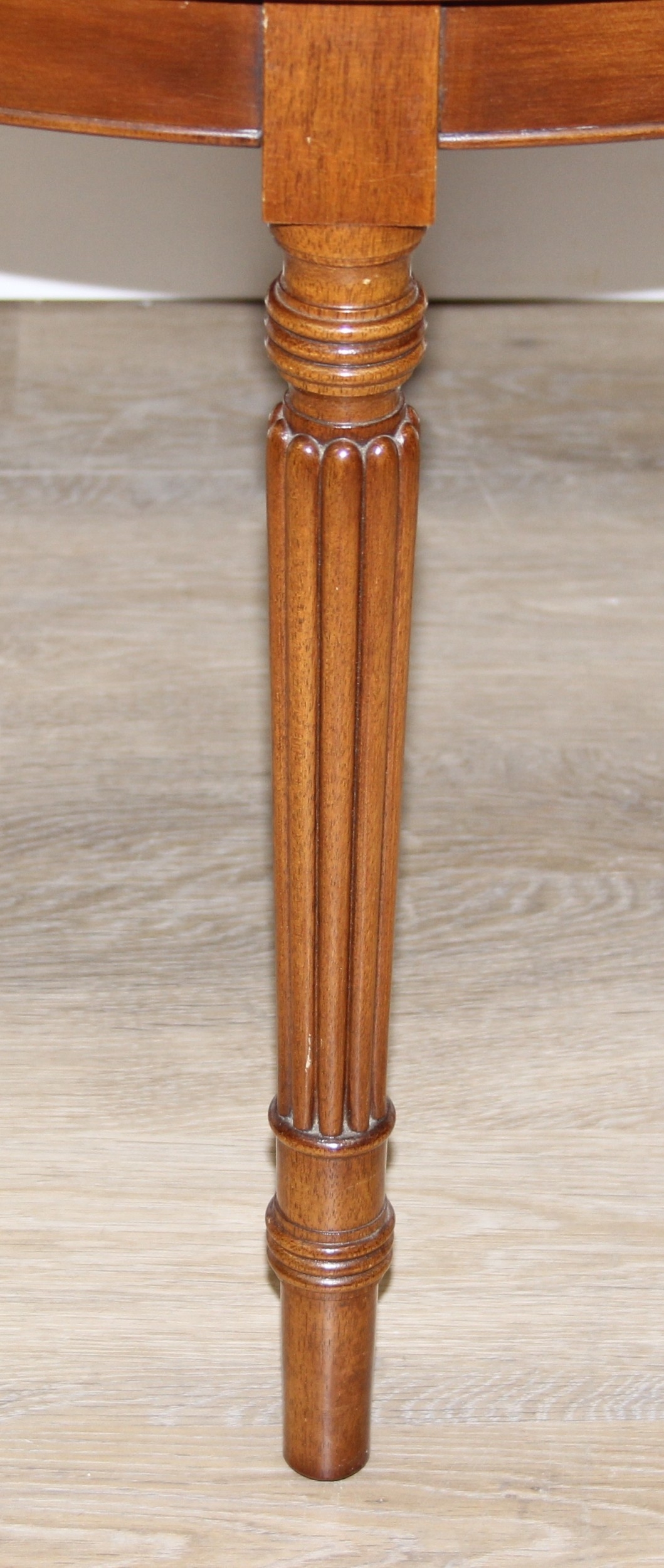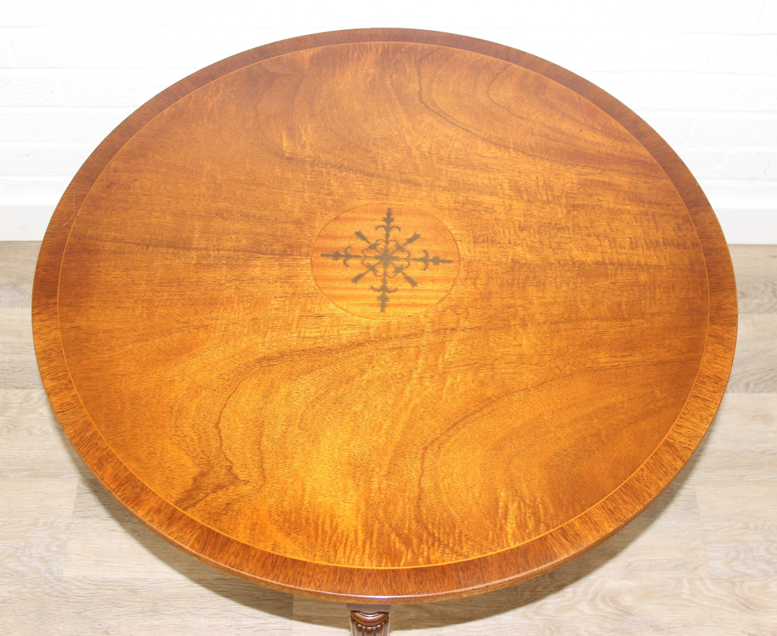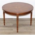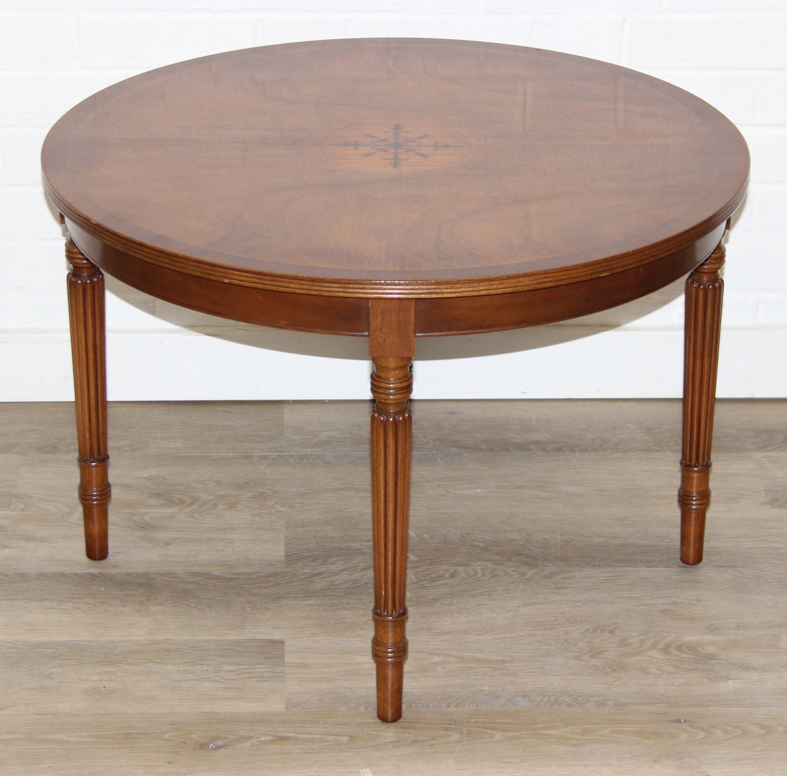 An antique style low round table with inlay and reeded legs, to match library table lot following, 76cm in diameter x 51cm tall