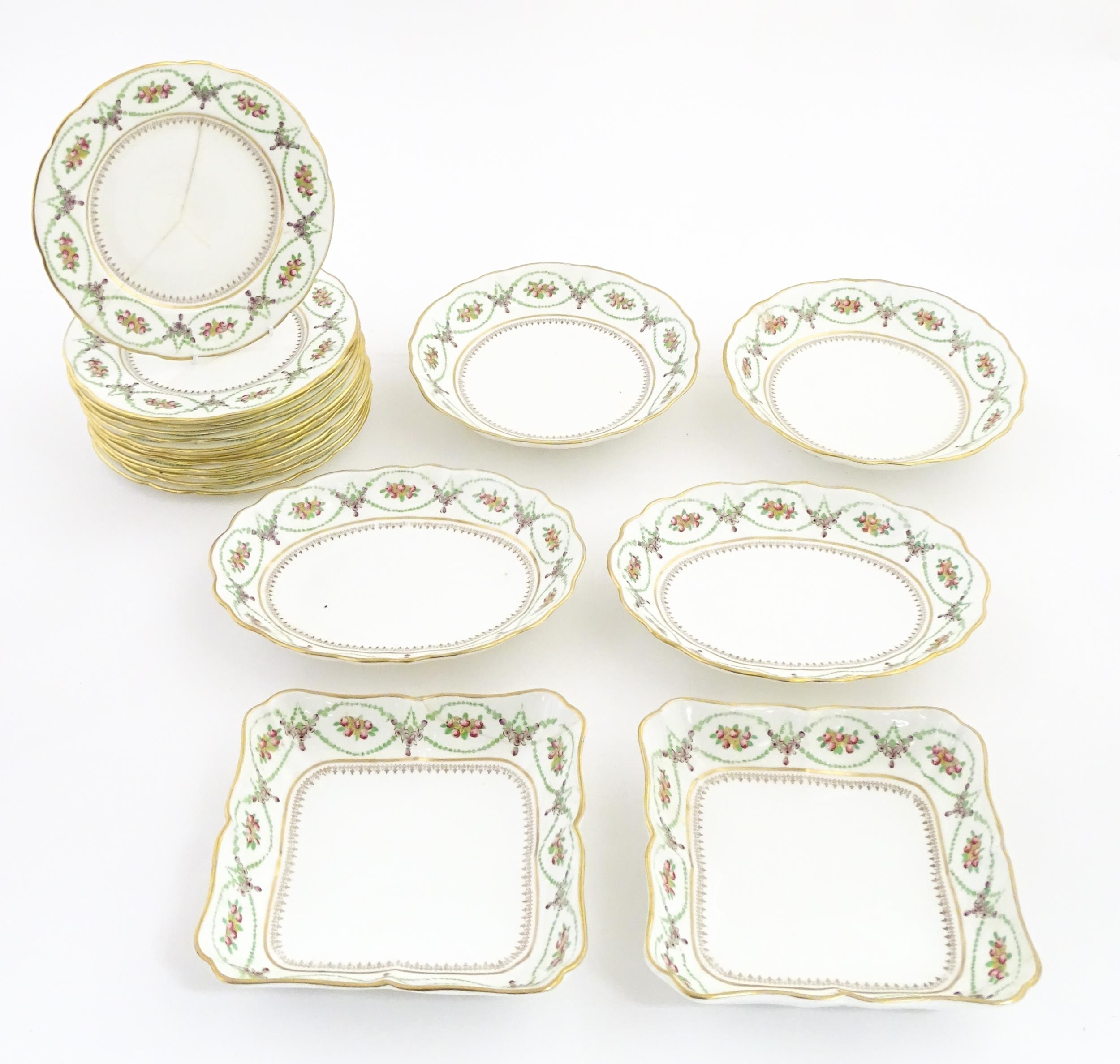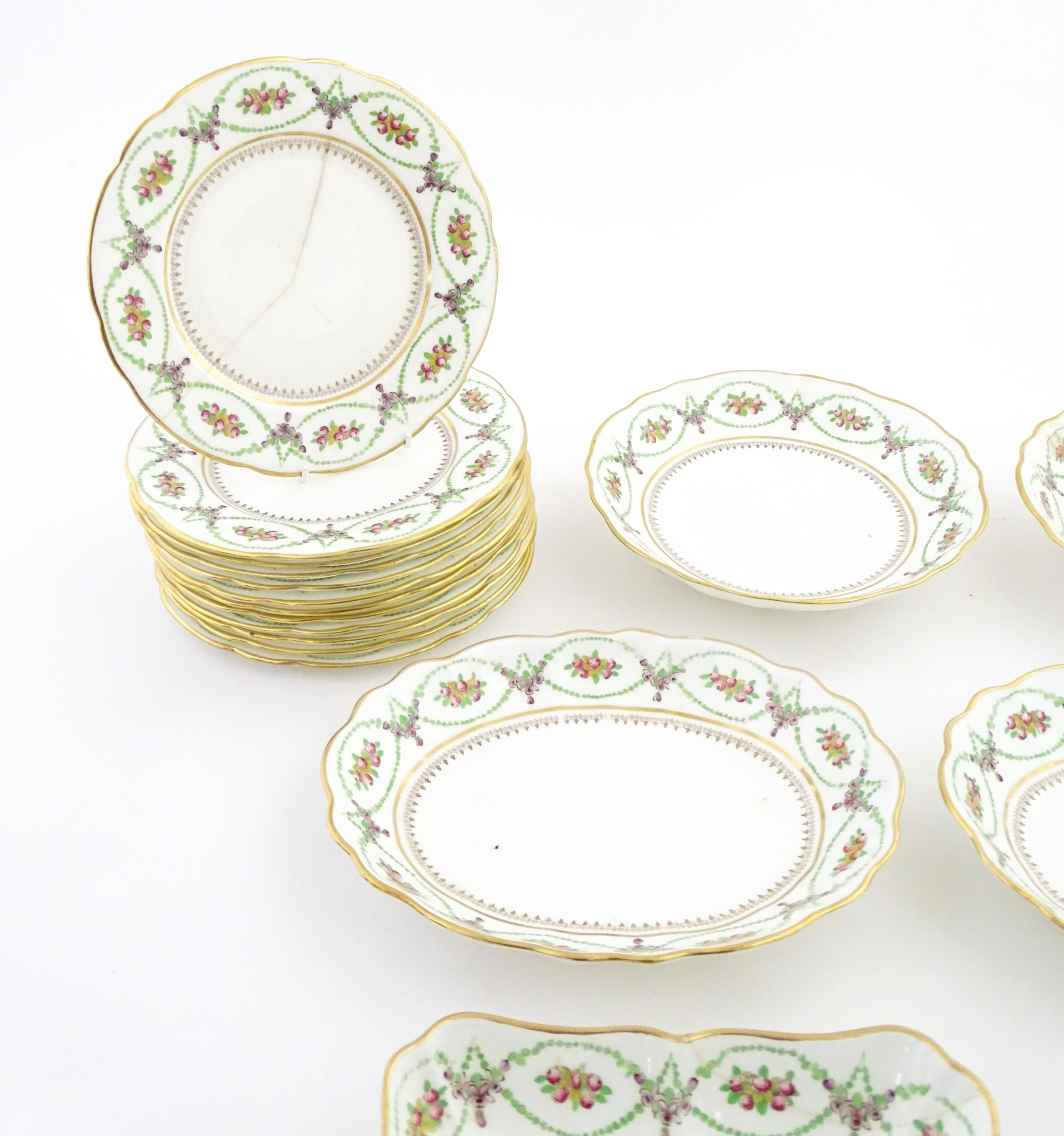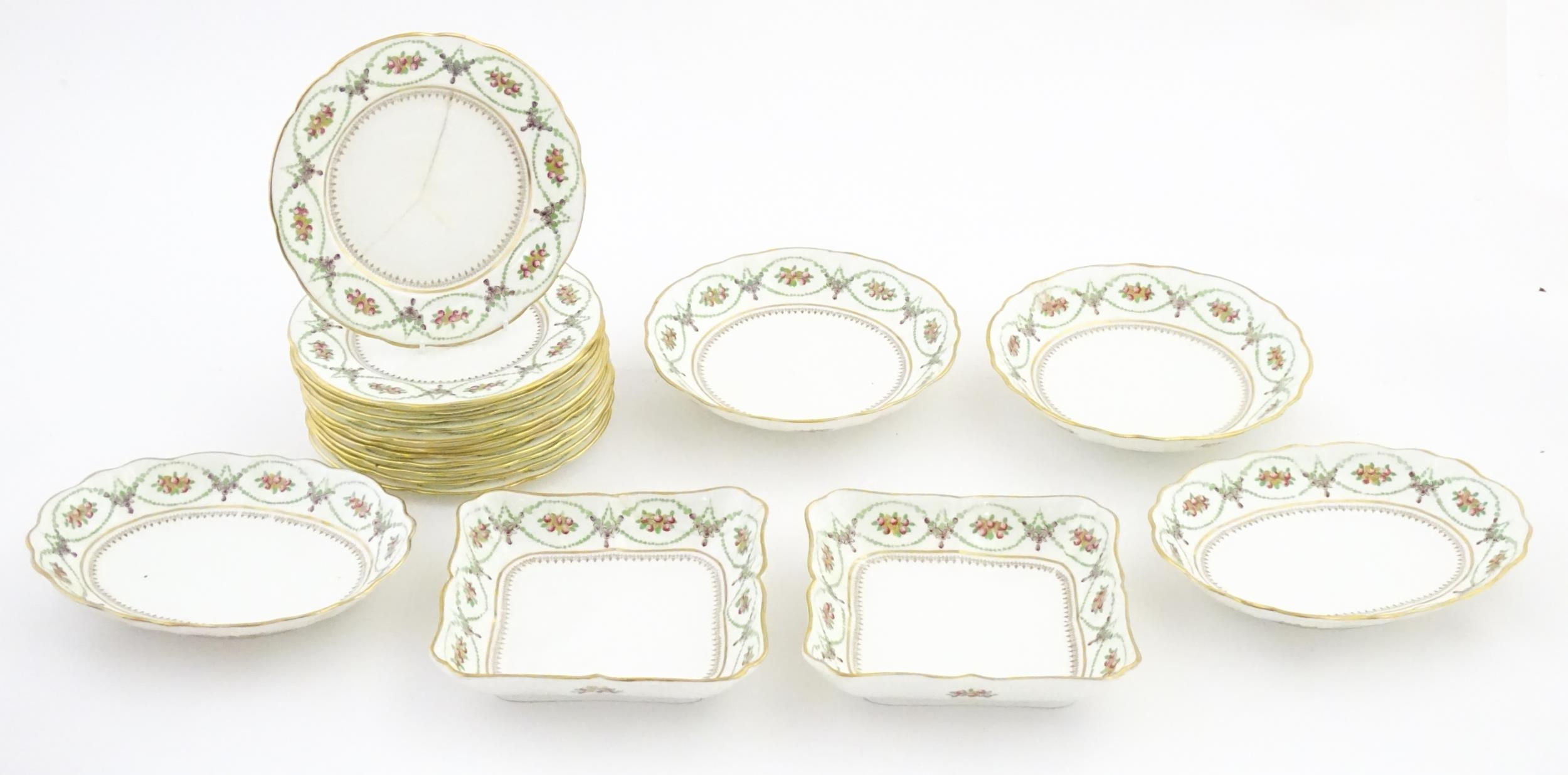 A quantity of Soane & Smith Ltd. dessert wares with flower and garland detail, to include plates and bowls. Plates approx. 8 1/2" wide
