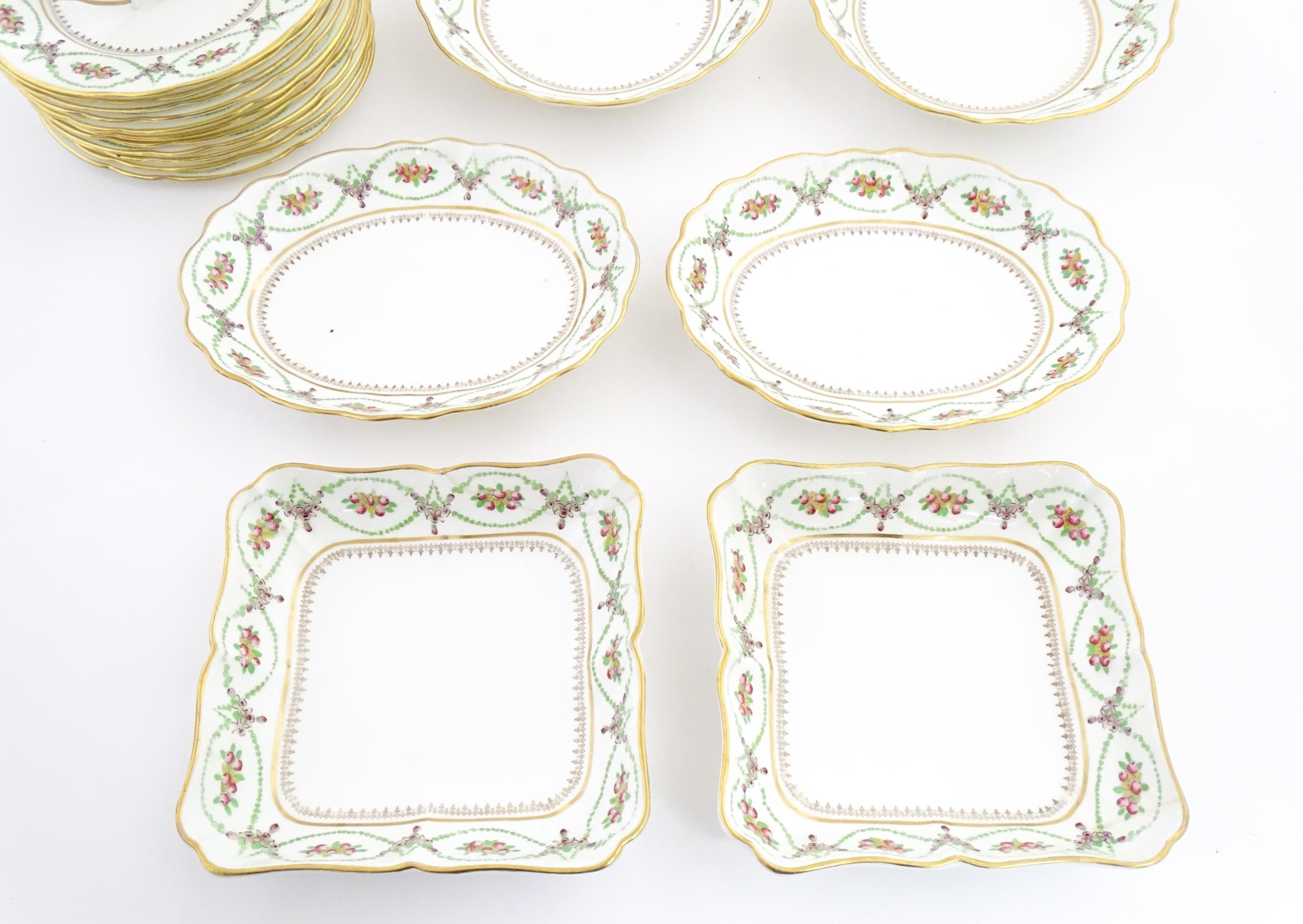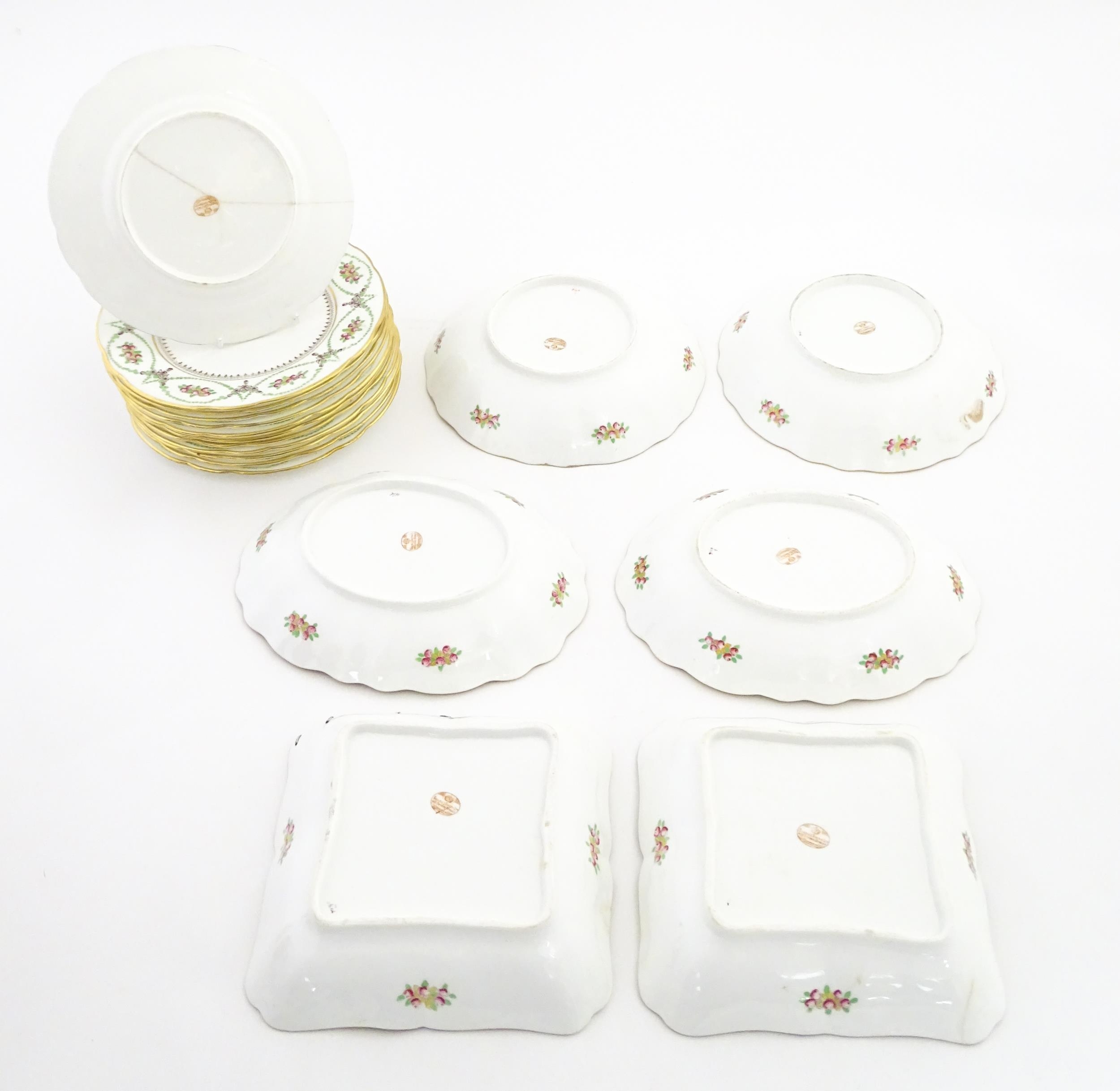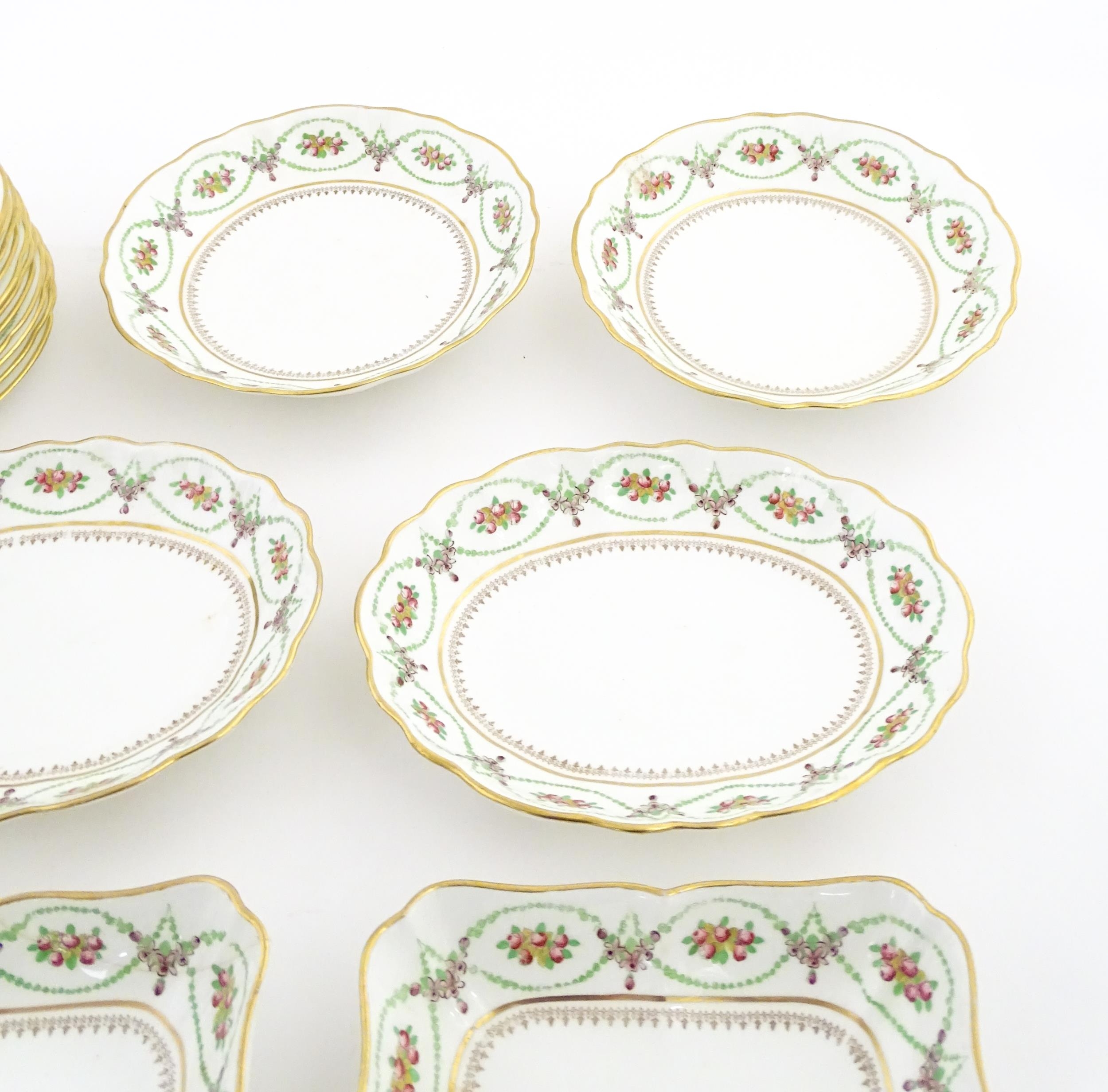 A quantity of Soane & Smith Ltd. dessert wares with flower and garland detail, to include plates and bowls. Plates approx. 8 1/2" wide