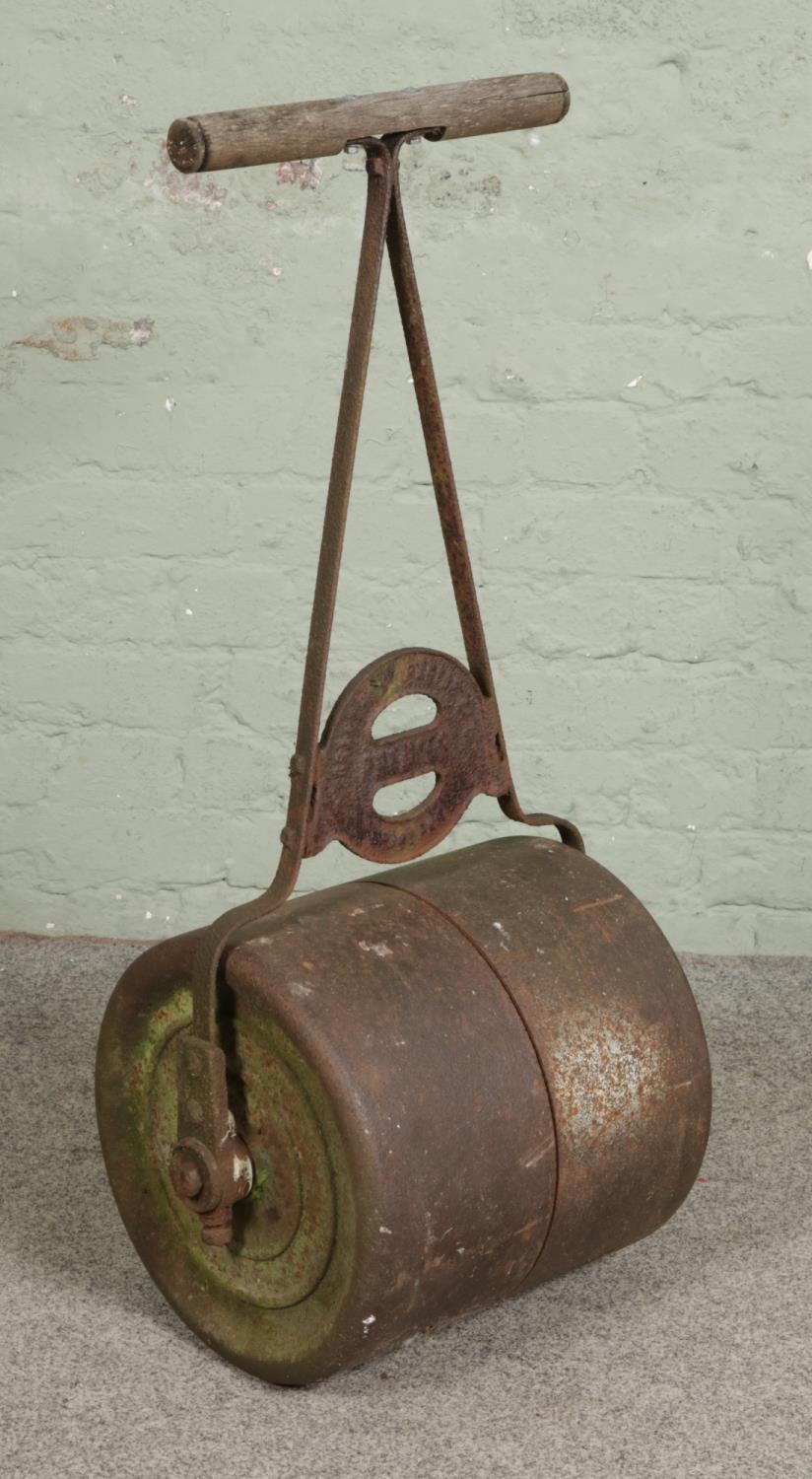 A vintage garden roller