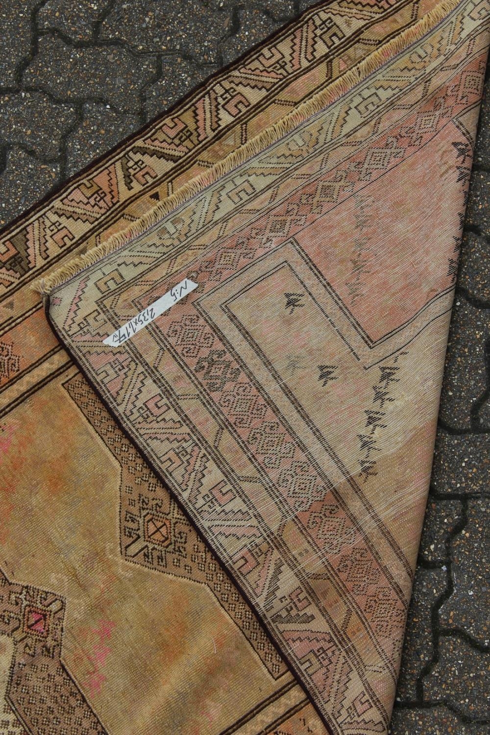 AN UNUSUAL PERSIAN HALL CARPET, beige ground, two central lozenge shaped medallions with stylised motifs.