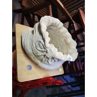 Decorative plastic bird bath with metal stand and base.