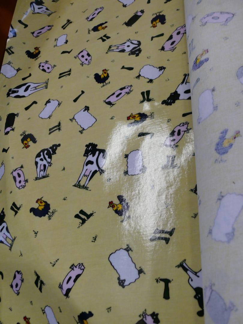 LARGE PART ROLL OF VINYL FARMYARD ANIMAL FABRIC