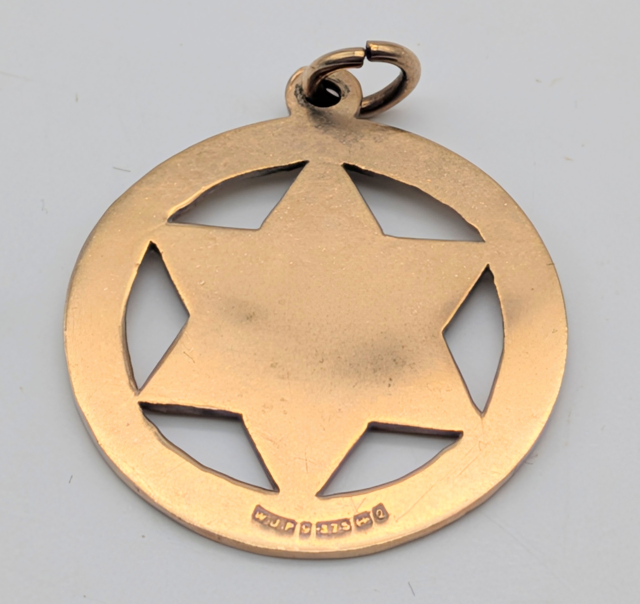 A 9K Gold Star of David Pendant. 2.5cm. 2g.