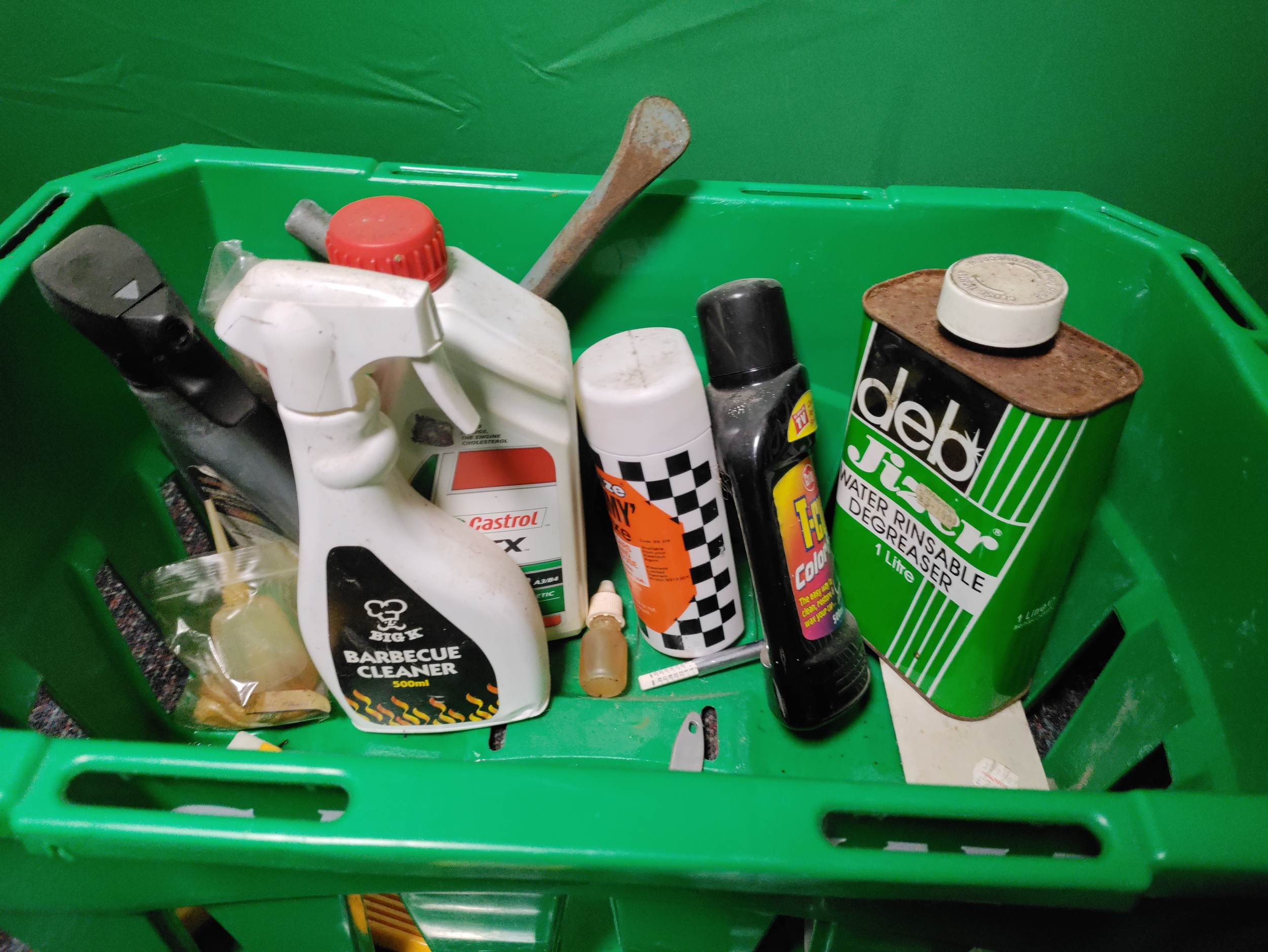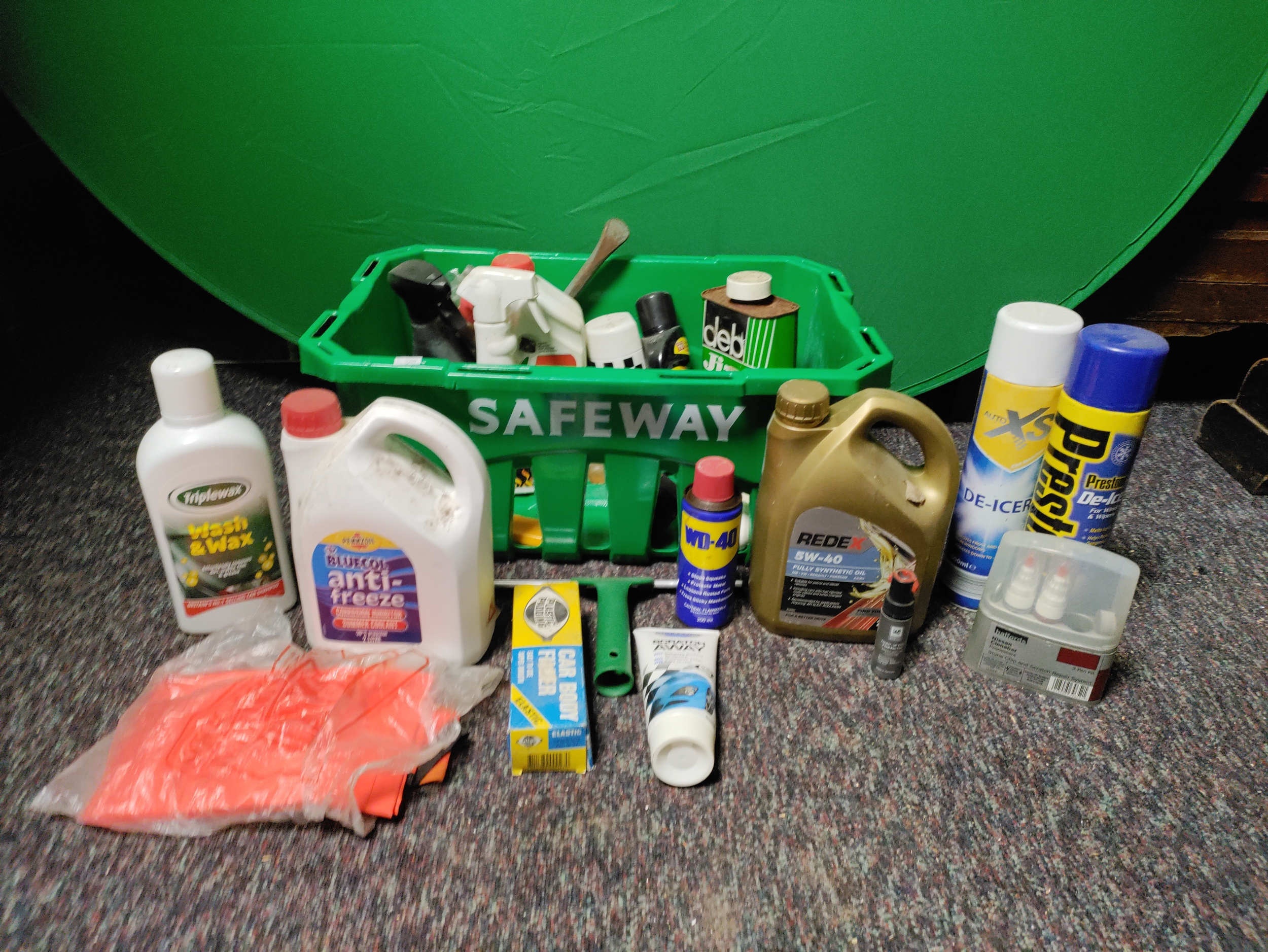 A collection of items from a garage clearance. To include anti freeze, de-icer, wash & wax, etc...