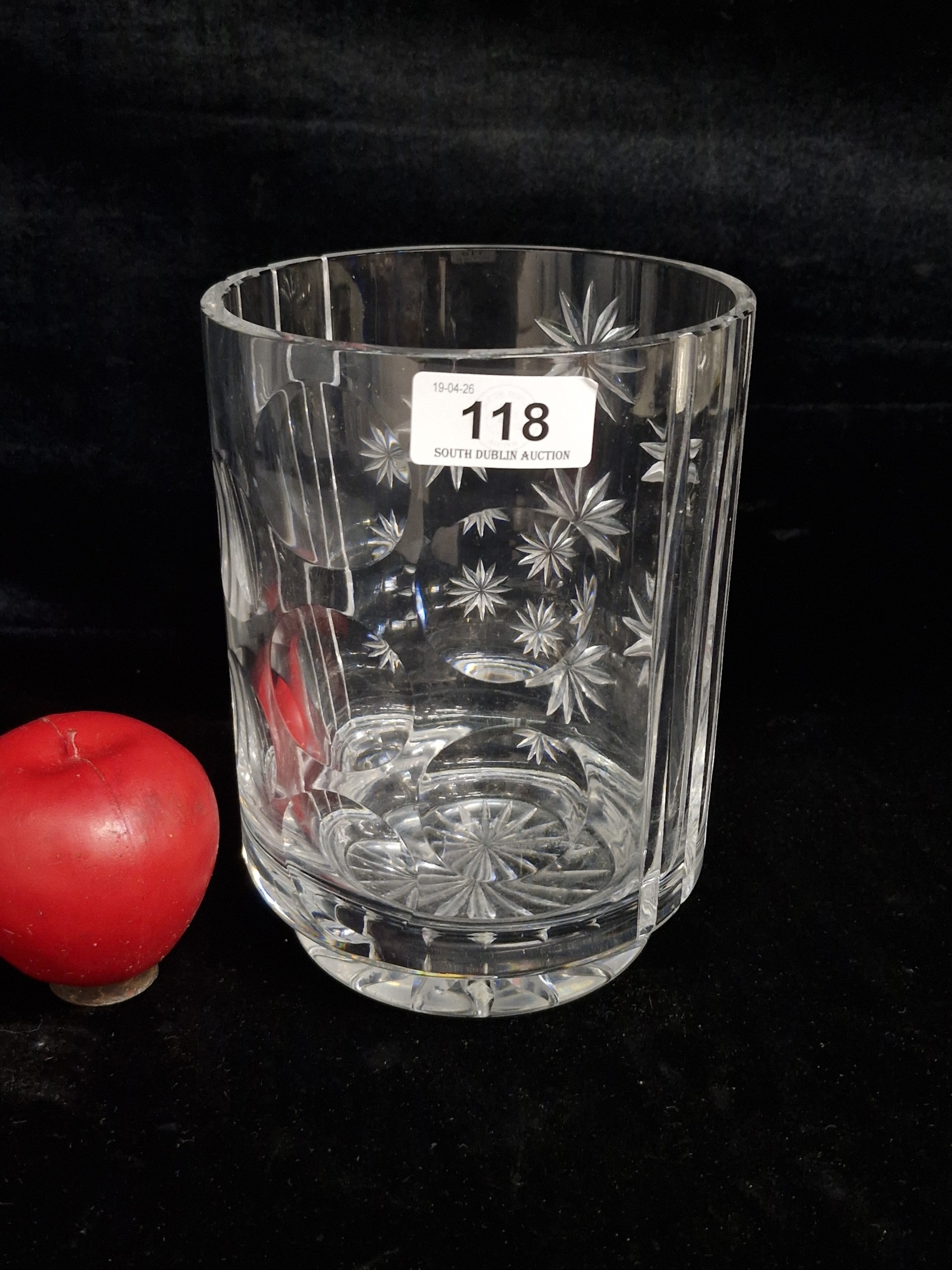 A vintage Bohemian Hand Cut Lead Crystal Vase or Ice bucket. Holds starburst like etchings. In excellent condition. Heavy very good quality.