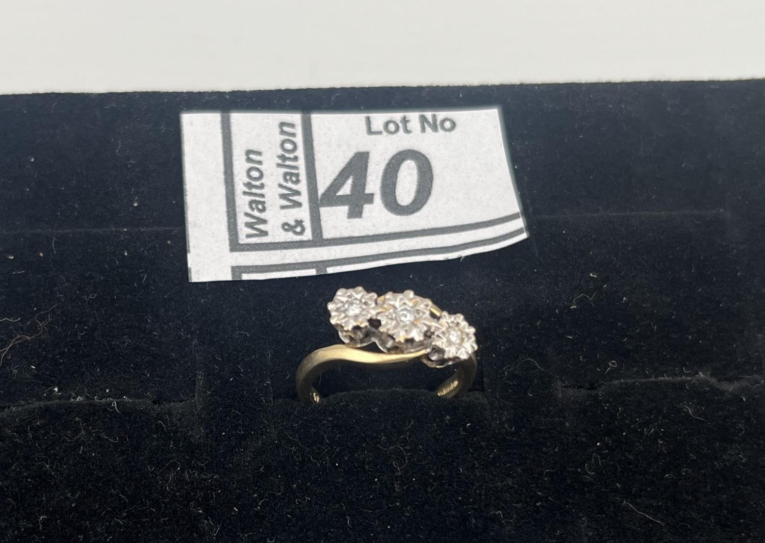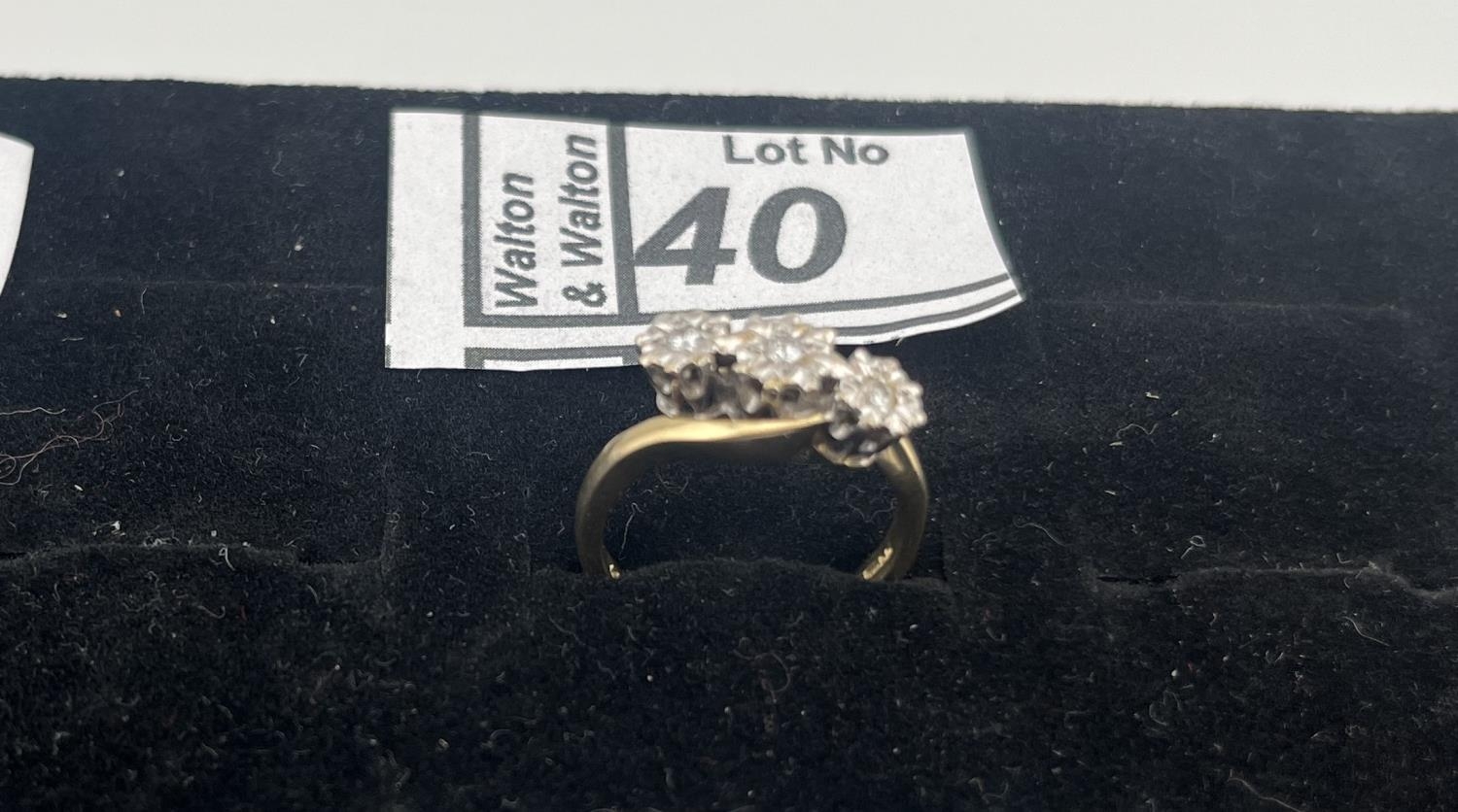 9ct Gold triple diamond ring, size L 3.2g - Only 10% buyer's premium
