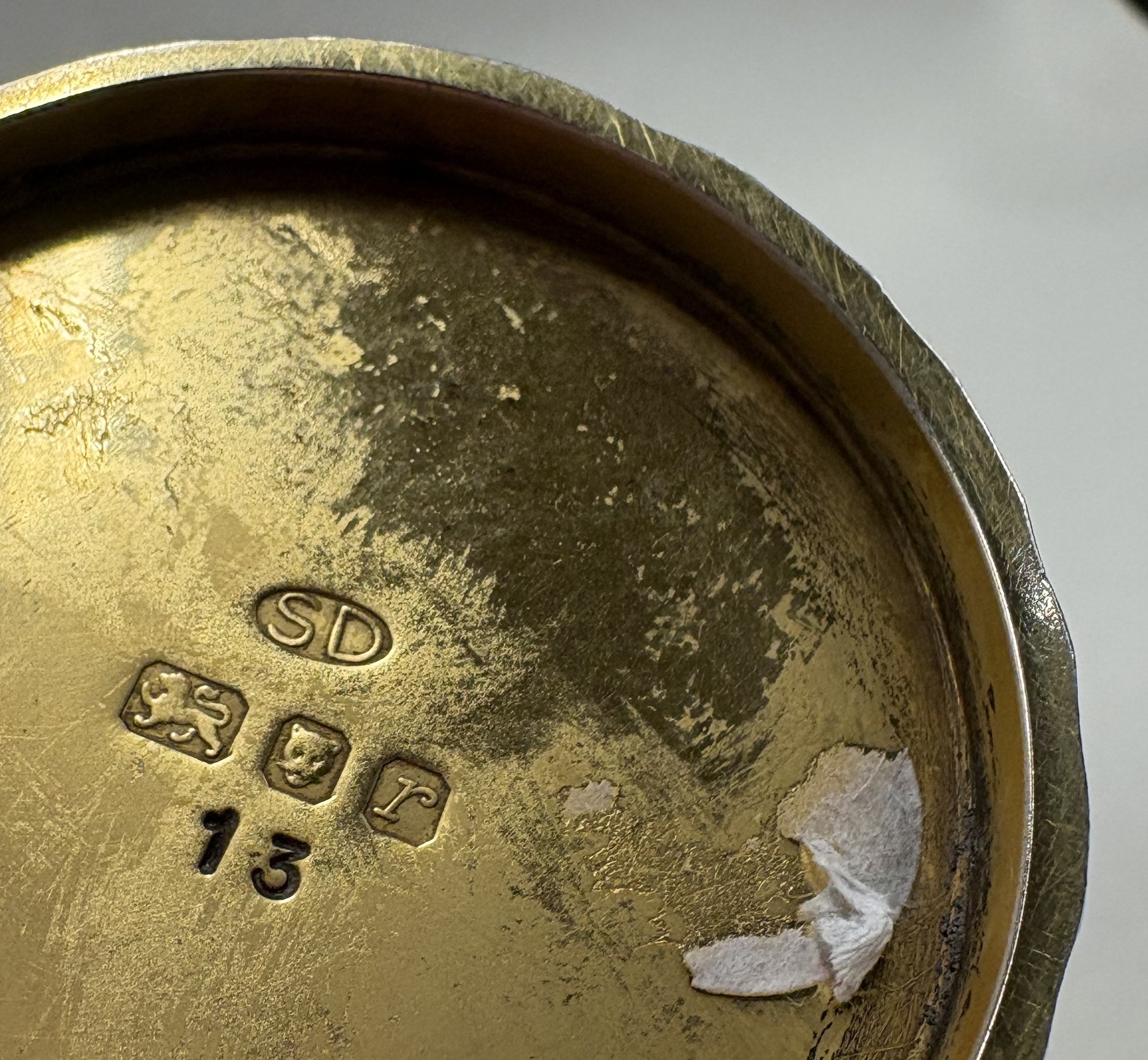 STUART DEVLIN: A silver beaker on gilt foot. Approx. 277 grams. Est. £600 - £800.