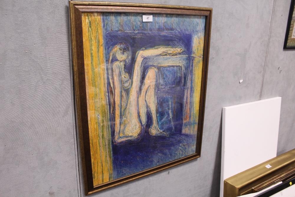 A FRAMED AND GLAZED MIXED MEDIA PICTURE ENTITLED 'COME IN FROM THE GARDEN AND PLAY' BY ROBYN MURPHY, 50 X 60 CM