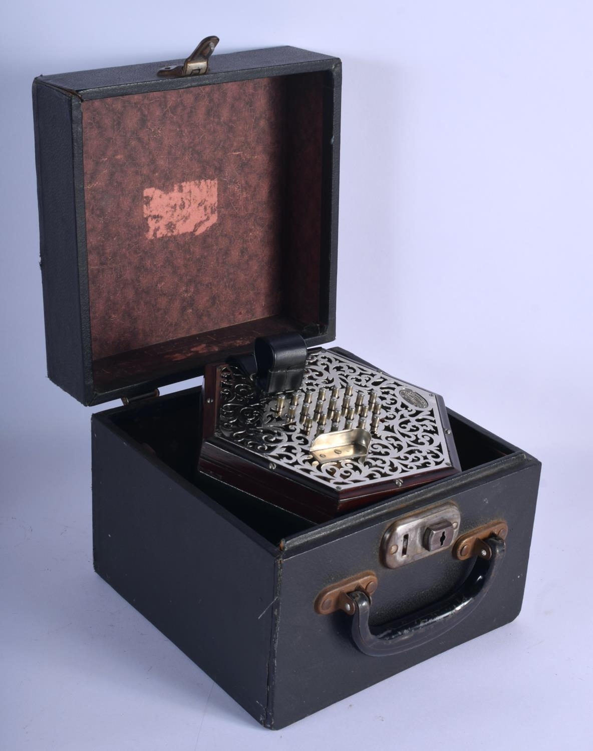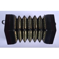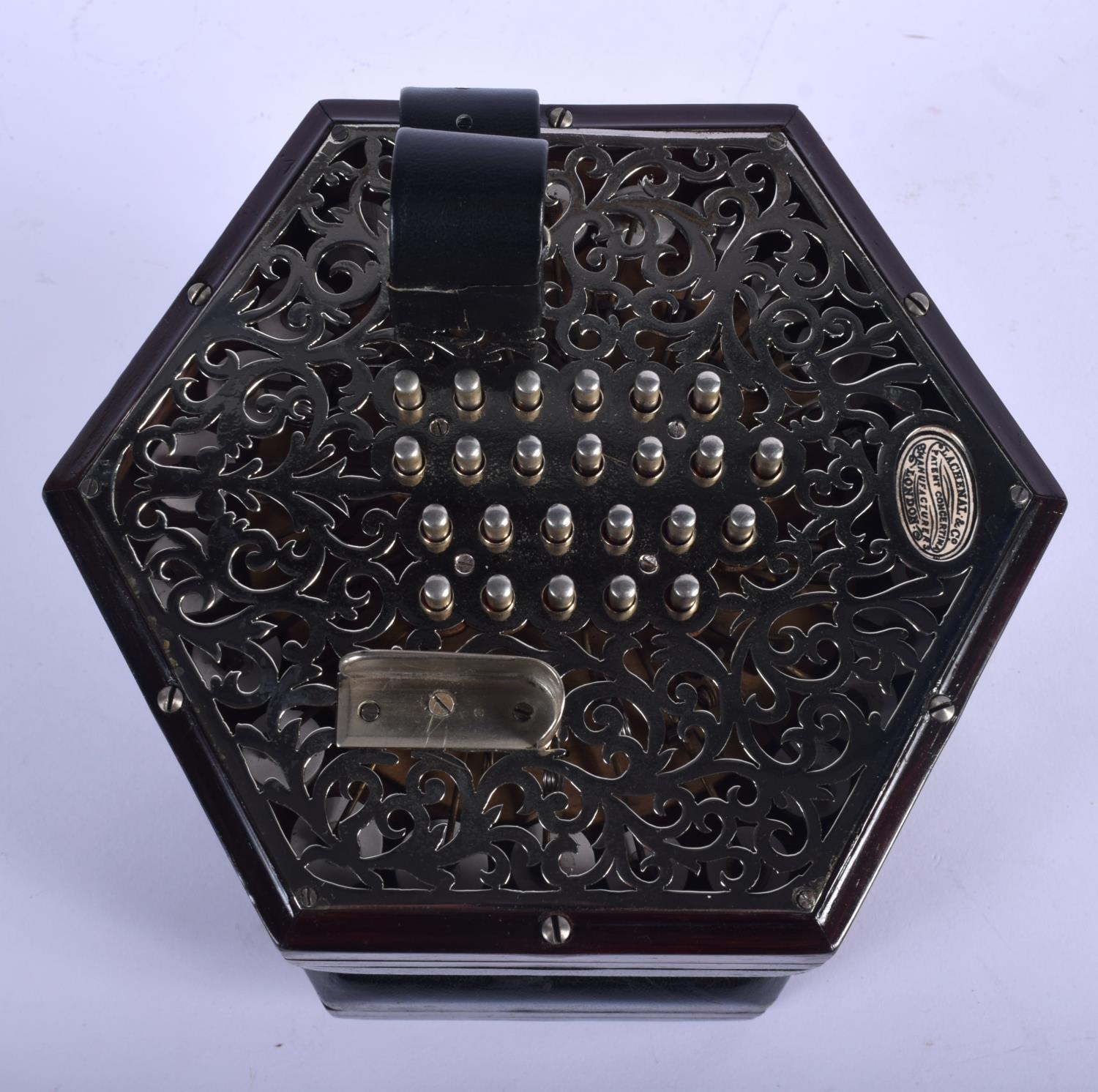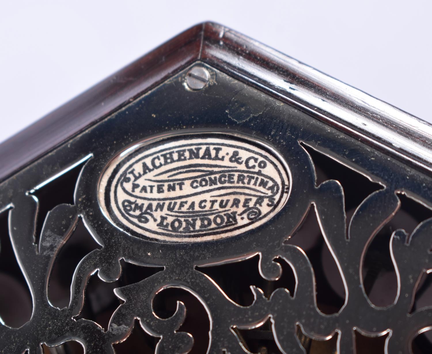 A BOXED 48 BUTTON LACHENAL & CO CONCERTINA within a case. Each end 16 cm x 16 cm.