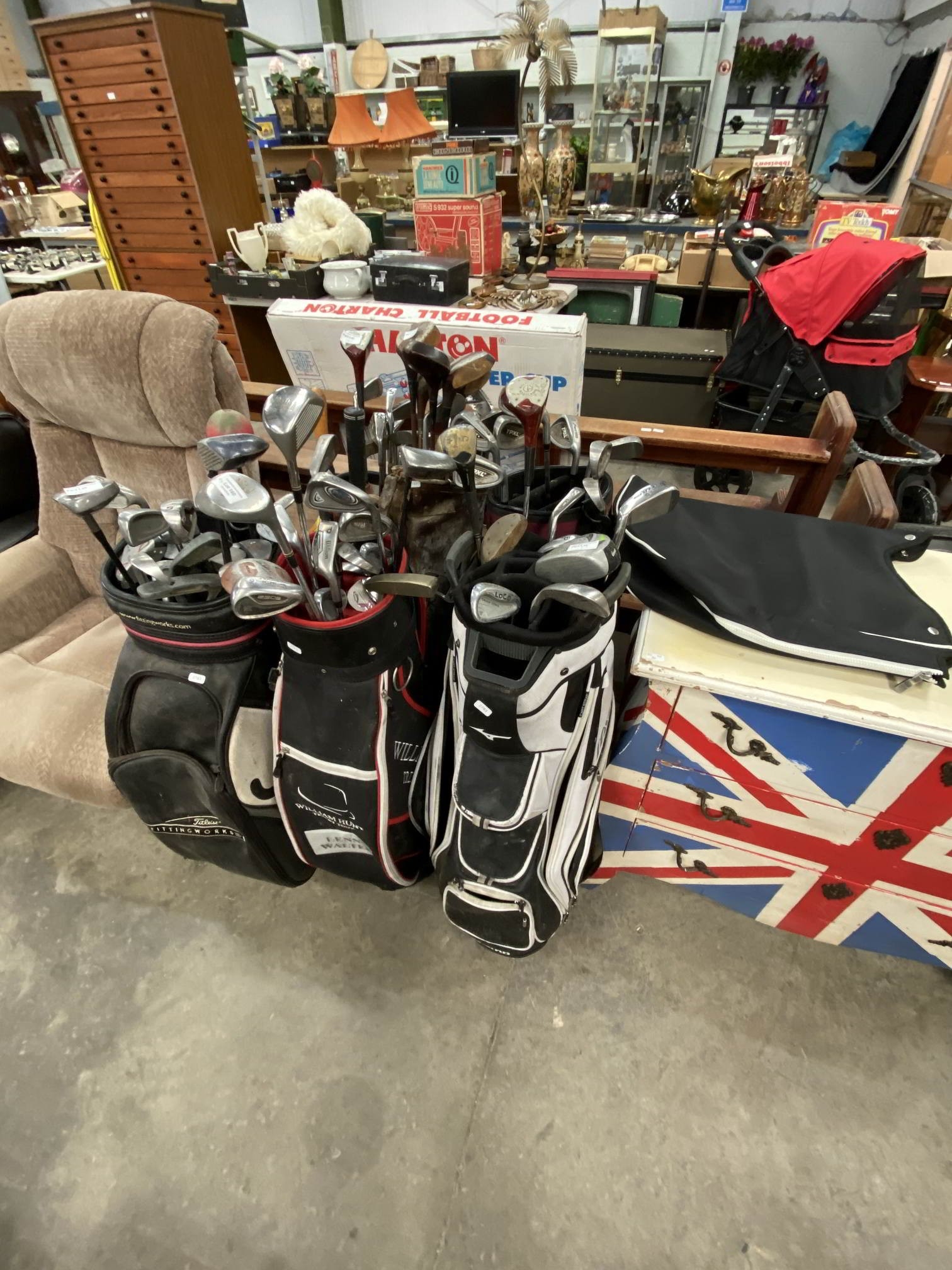 6 golf bags and clubs including VIP Century, Maxfli, Golecraft, Power Bilt etc