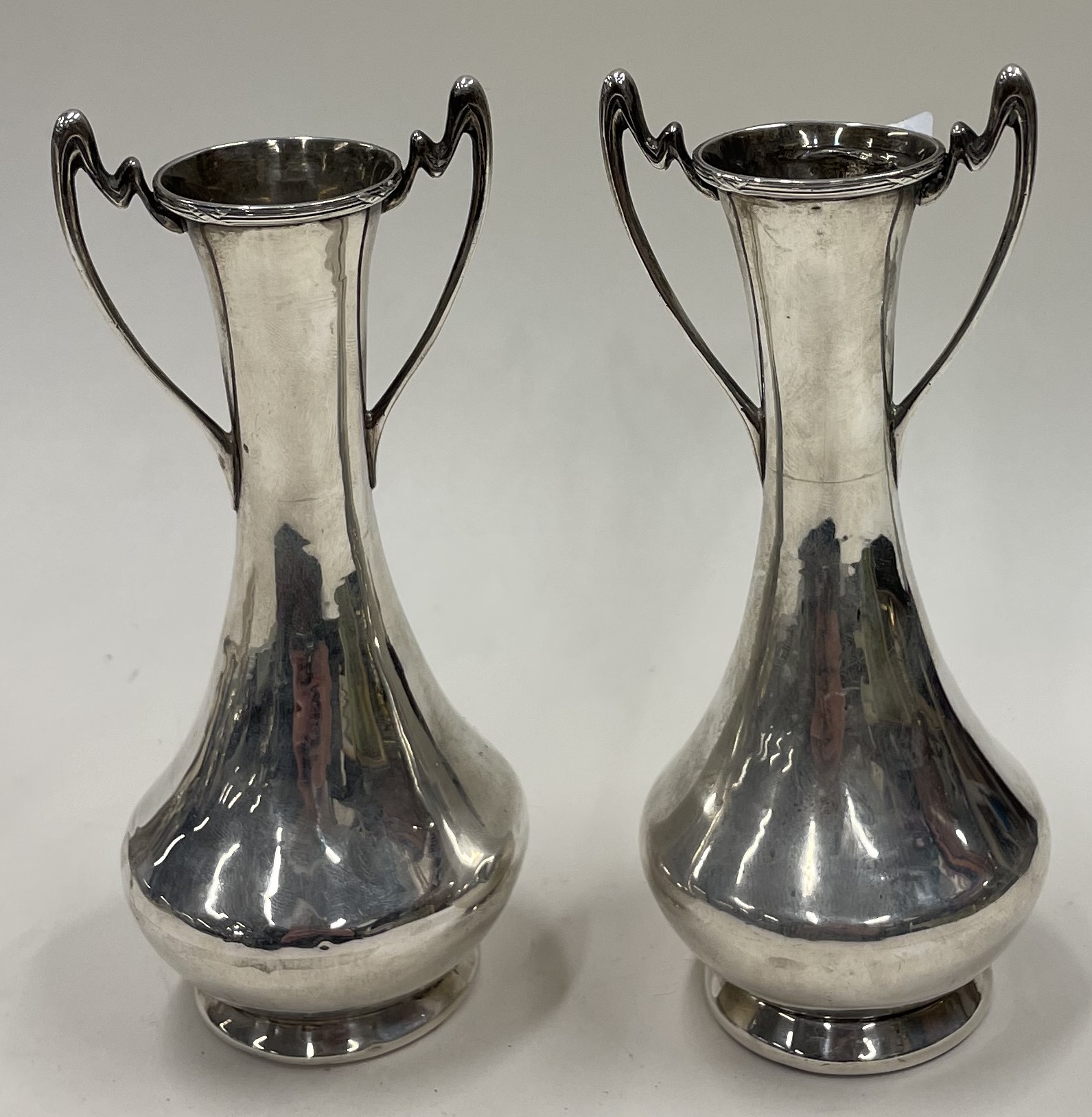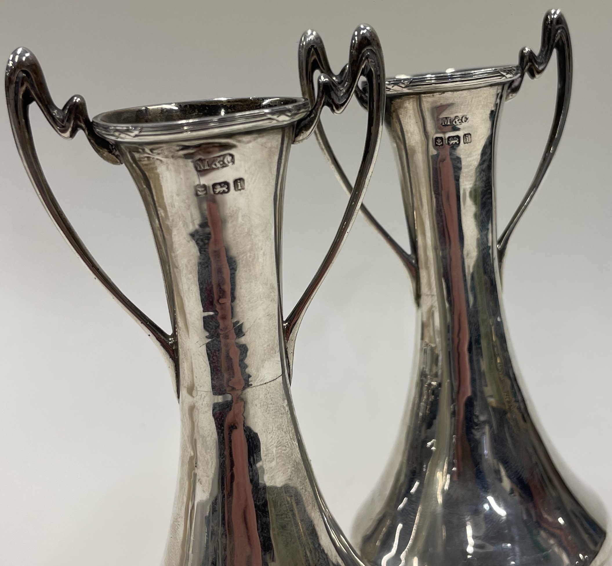 A pair of silver Art Nouveau vases. Birmingham 1908. By M&C. Approx. 265 grams. Est. £120 - £150.
