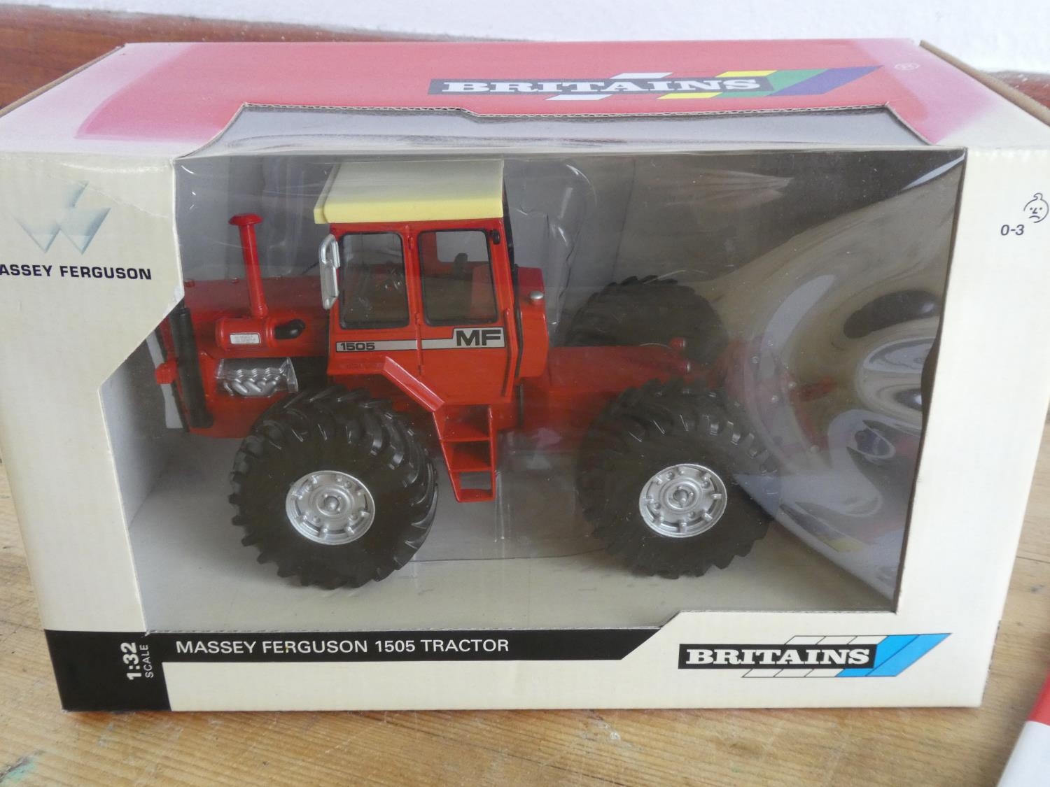 A boxed Britains Massey Ferguson 1505 tractor and booklet.