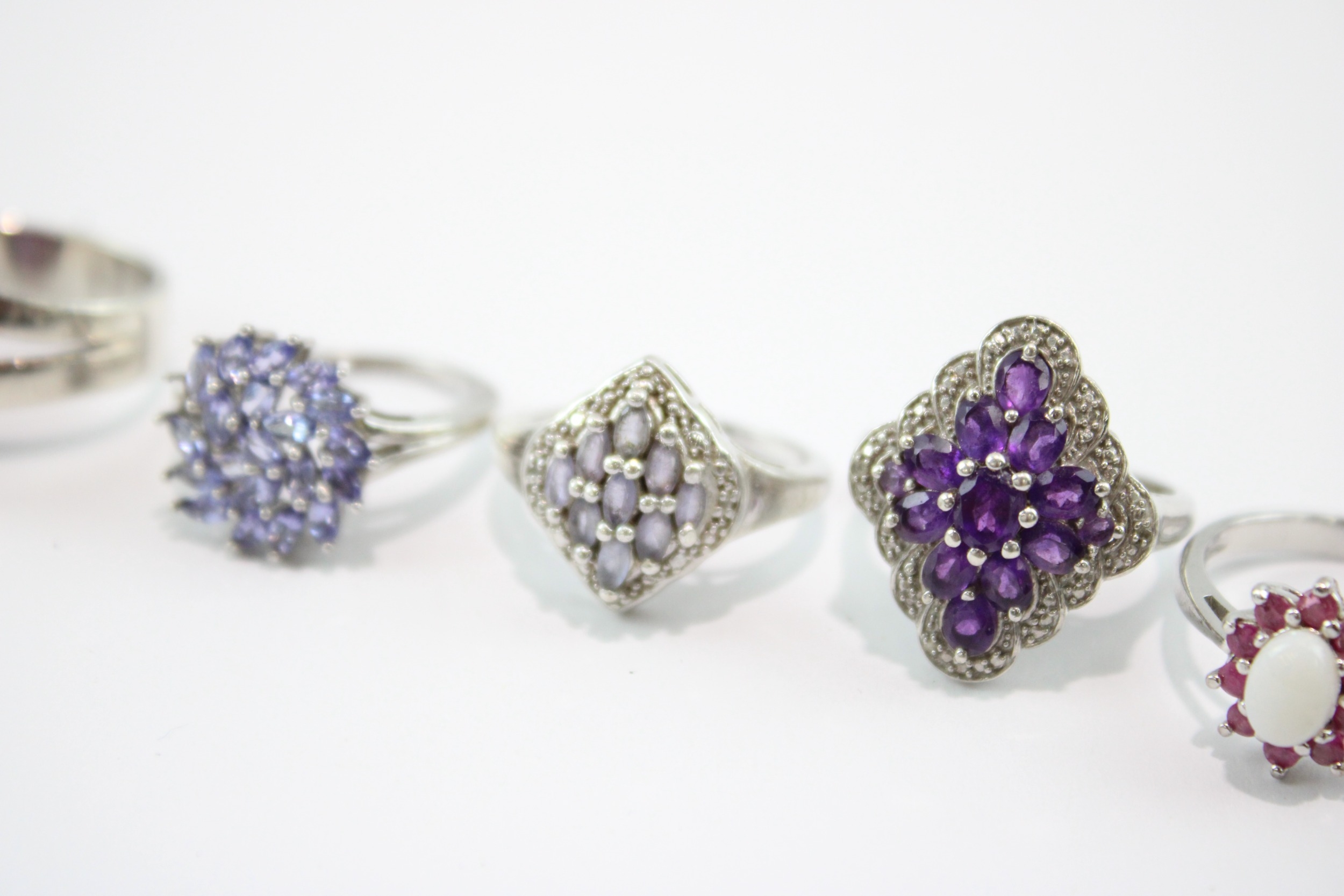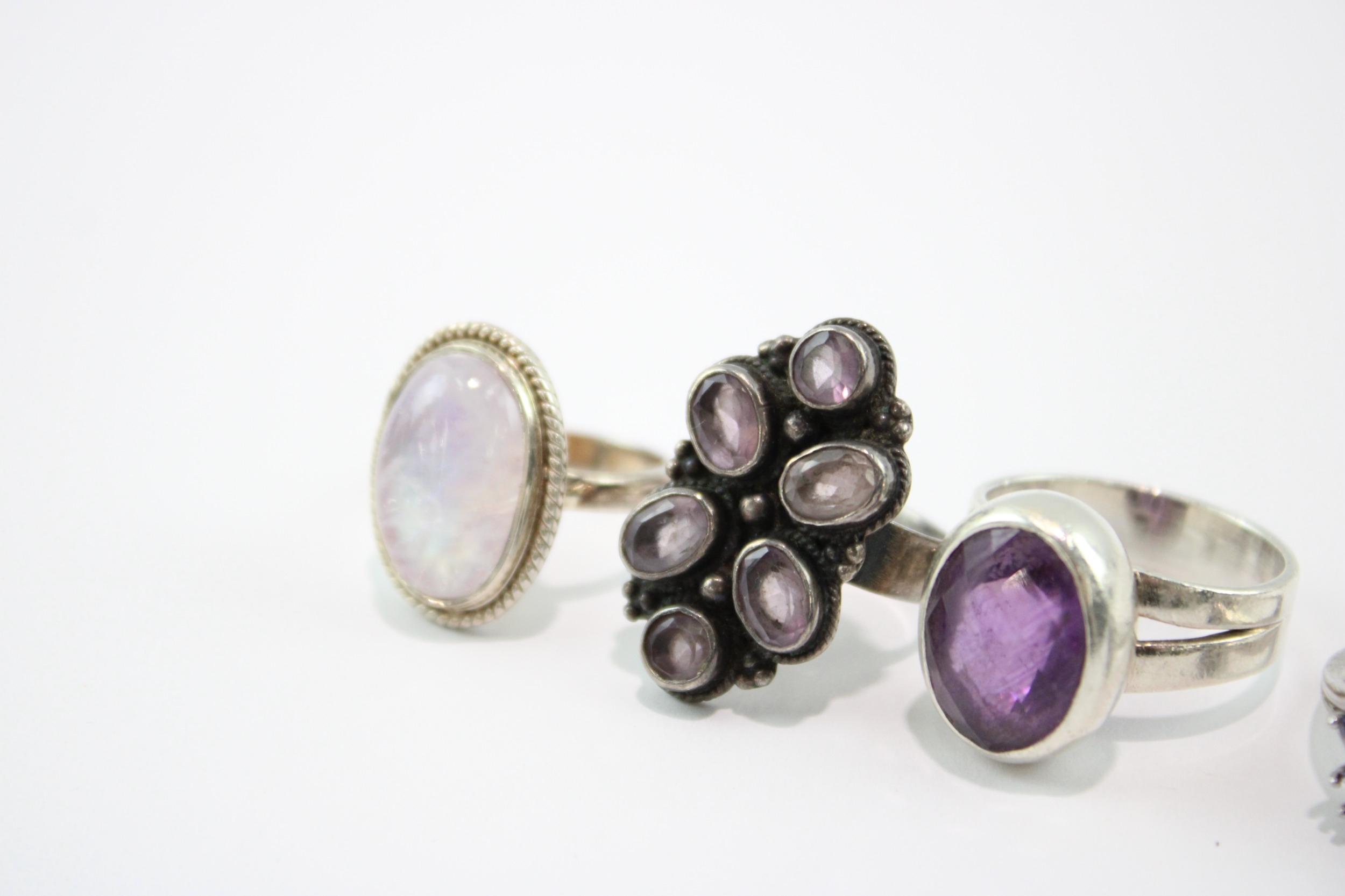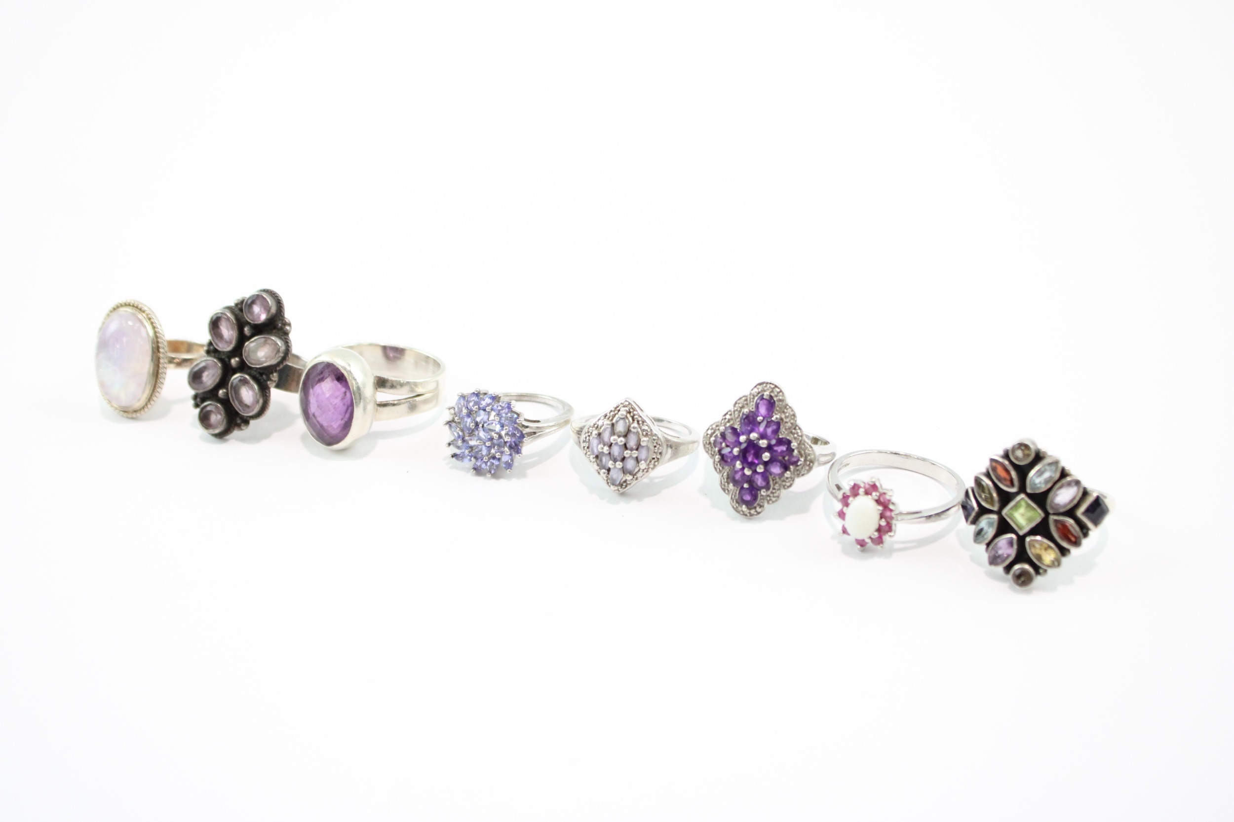 Collection of Sterling Silver Gemstone Rings, inc. Enhanced Ruby, Moonstone x 8 (49g)