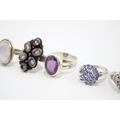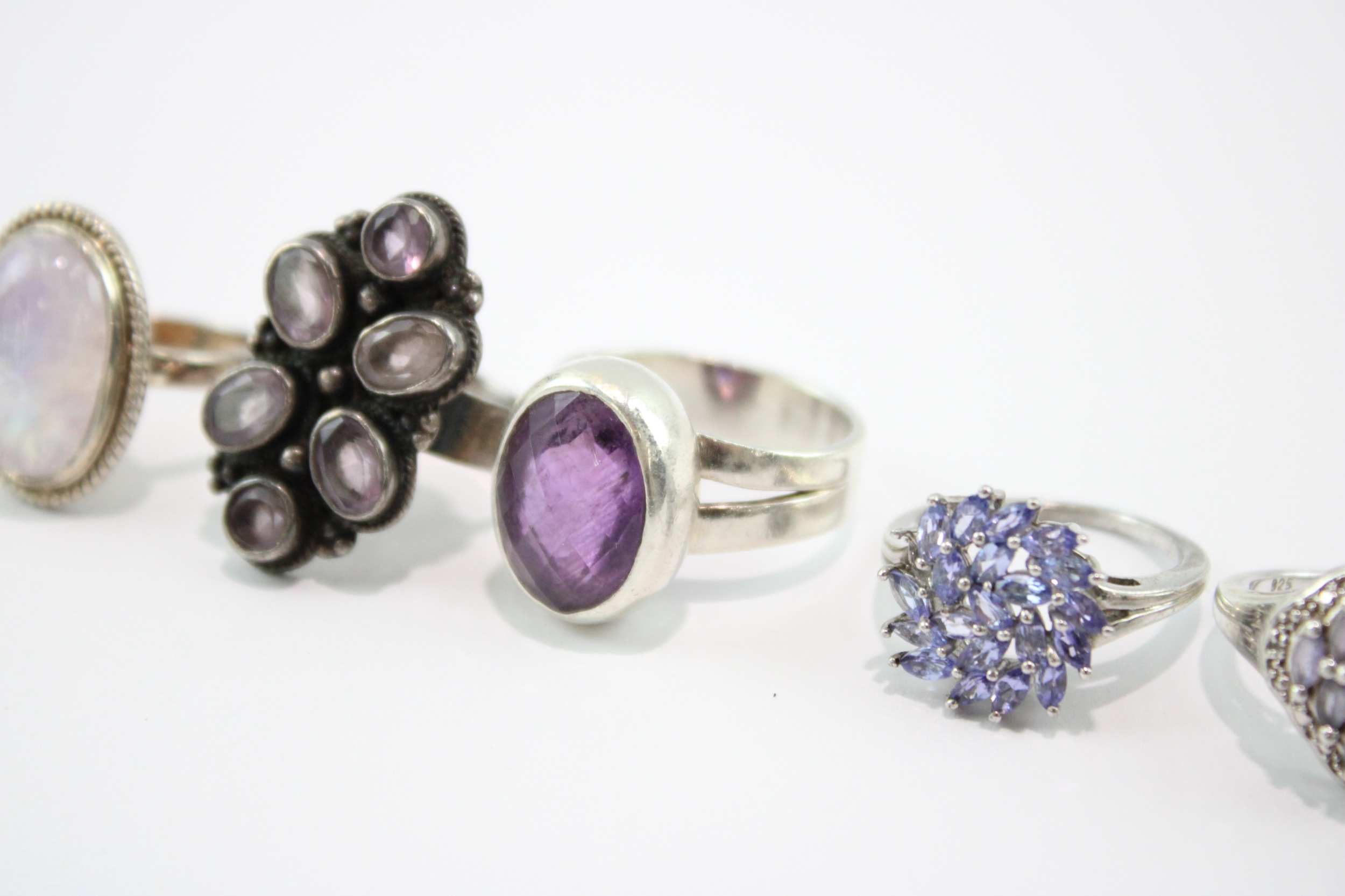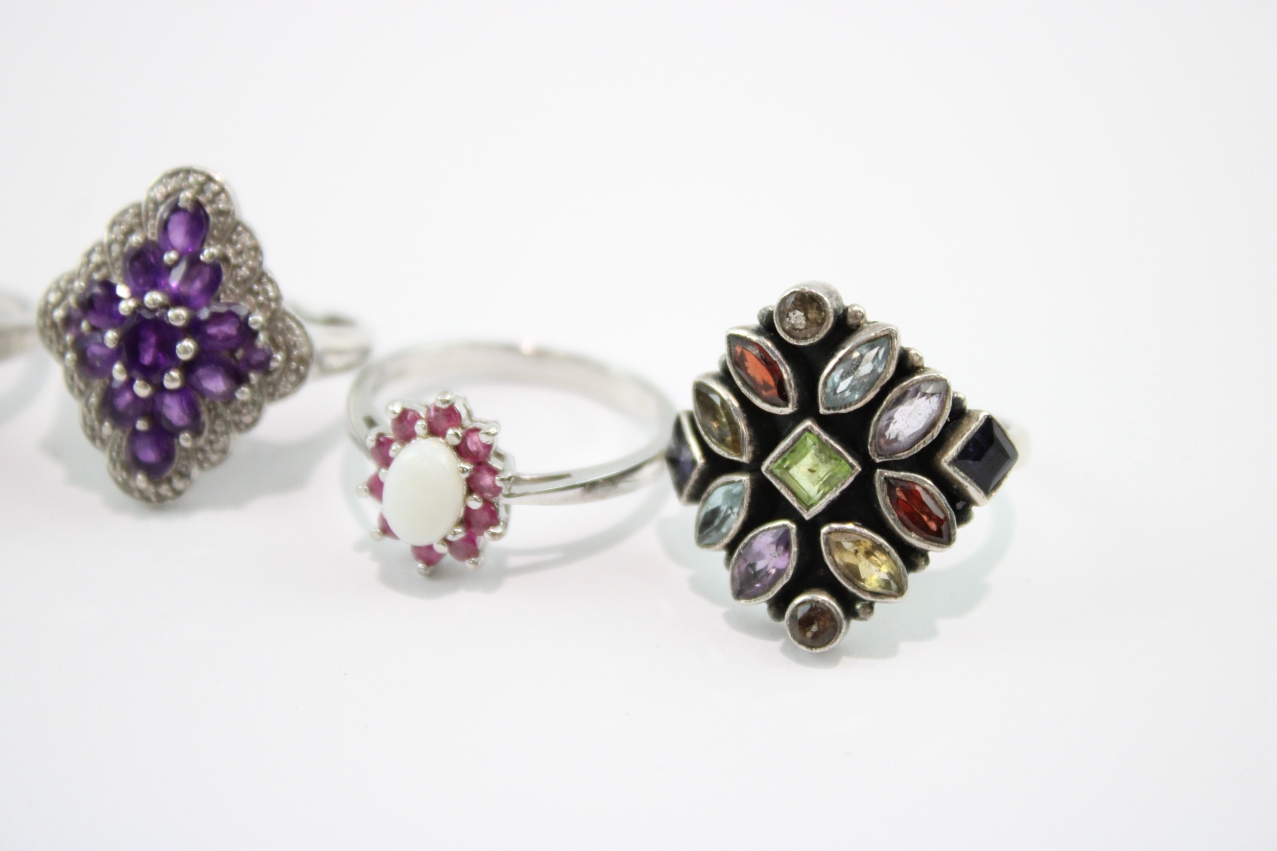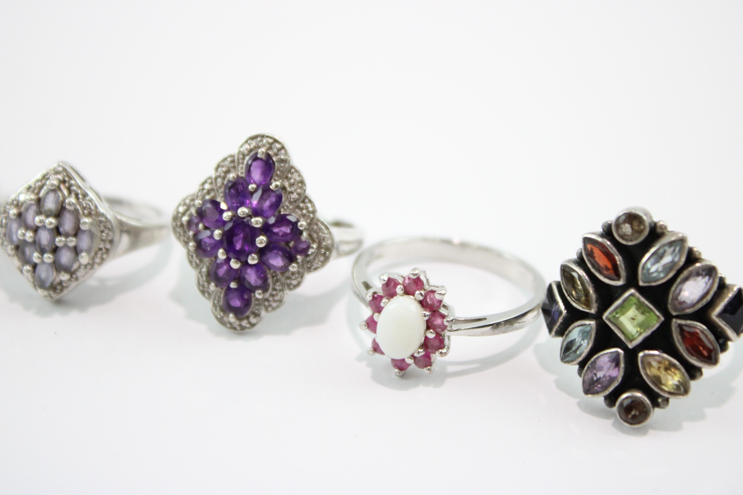 Collection of Sterling Silver Gemstone Rings, inc. Enhanced Ruby, Moonstone x 8 (49g)