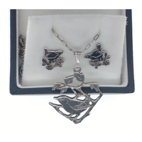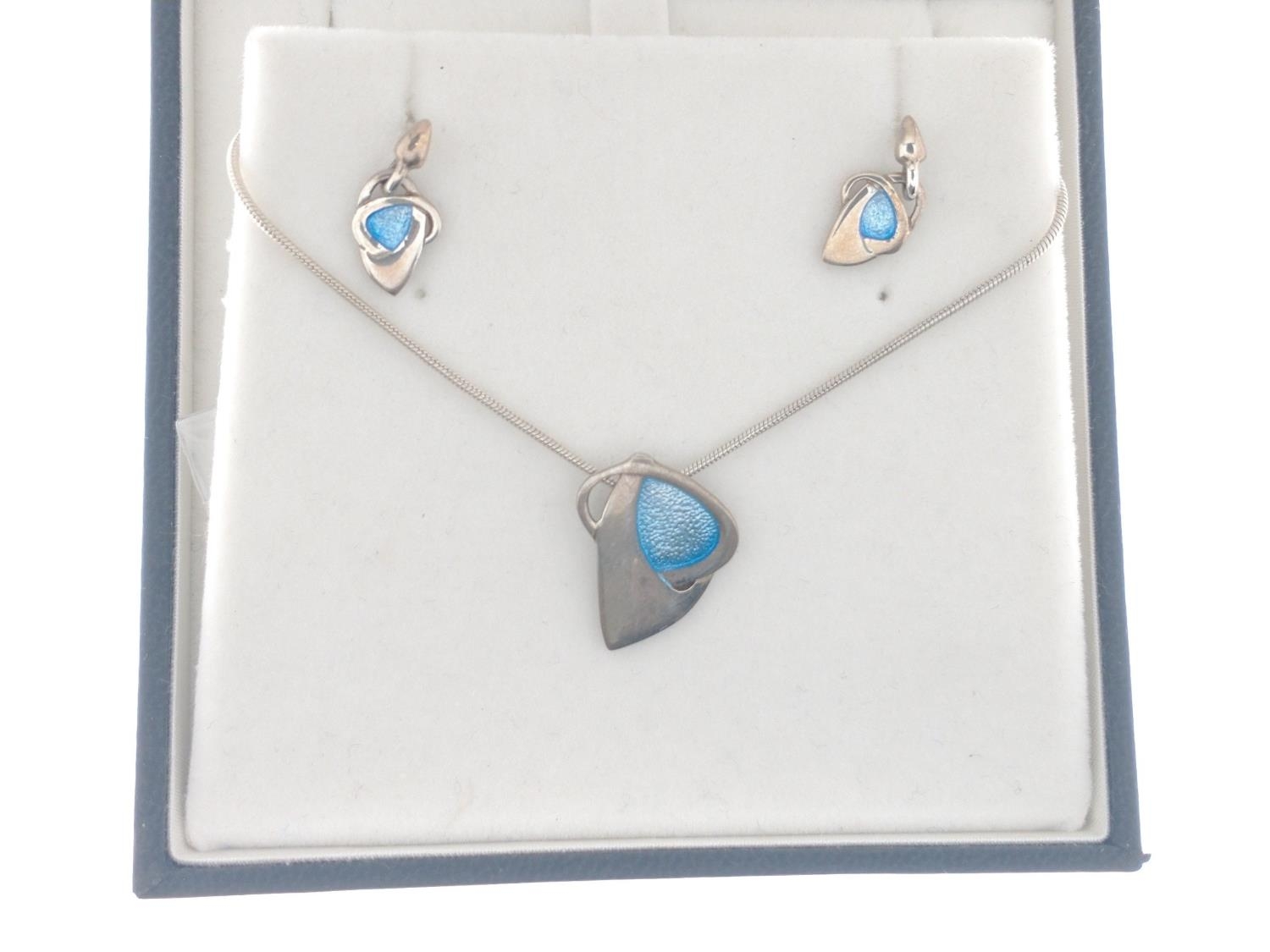 Boxed 925 stamped silver ORTAK pendant and matching earrings [20cm with pendant]
