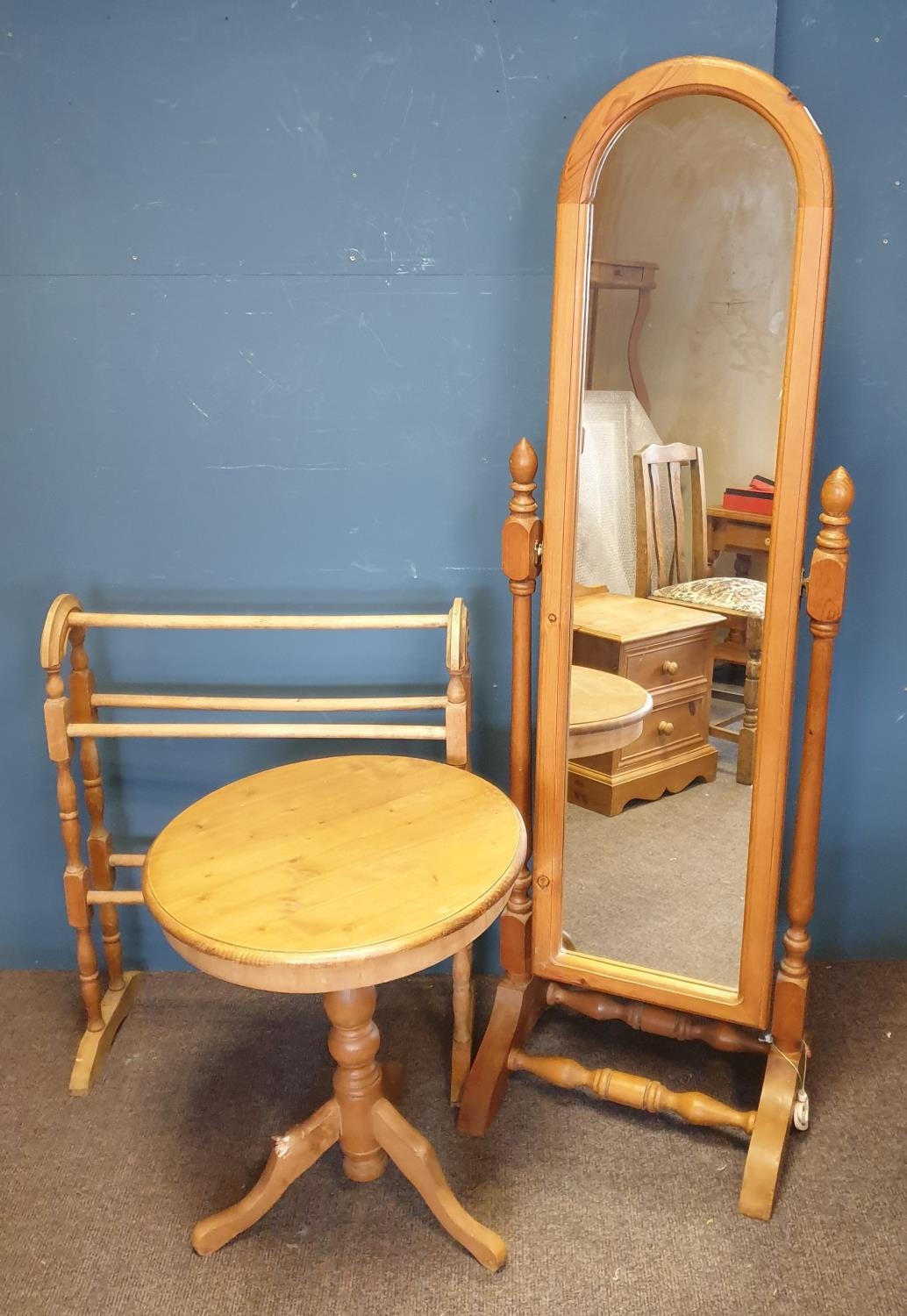 Cheval Mirror (Height 152cm), Towel Rail & Circular Occasional Table