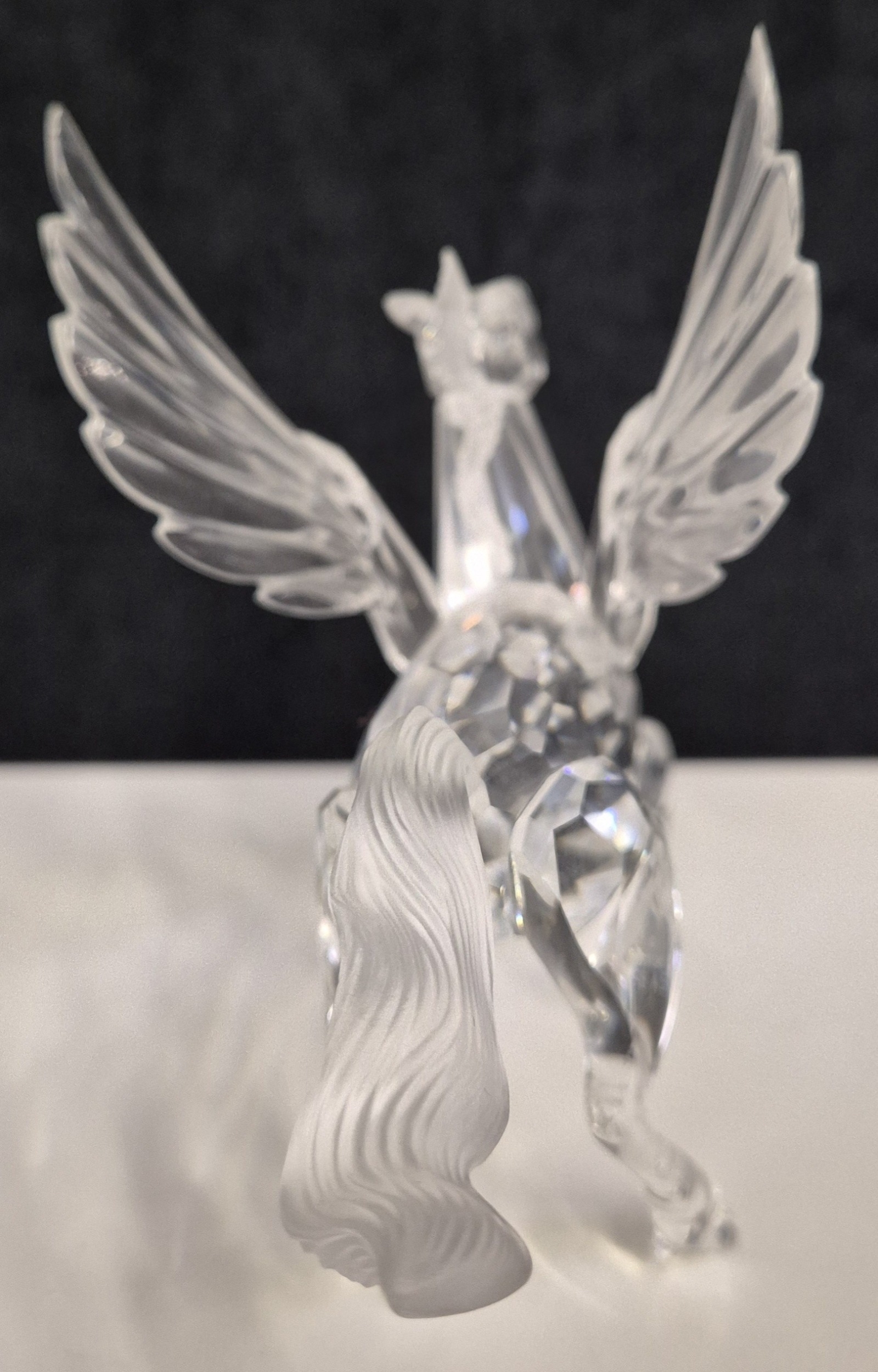 Available during 1998, Pegasus was the final piece of the “Fabulous Creatures” trilogy. Designed to stand on the hind legs and tail, Pegasus is made predominantly from clear crystal, with tabac eyes and a matt crystal mane and tail. and tabac eyes.