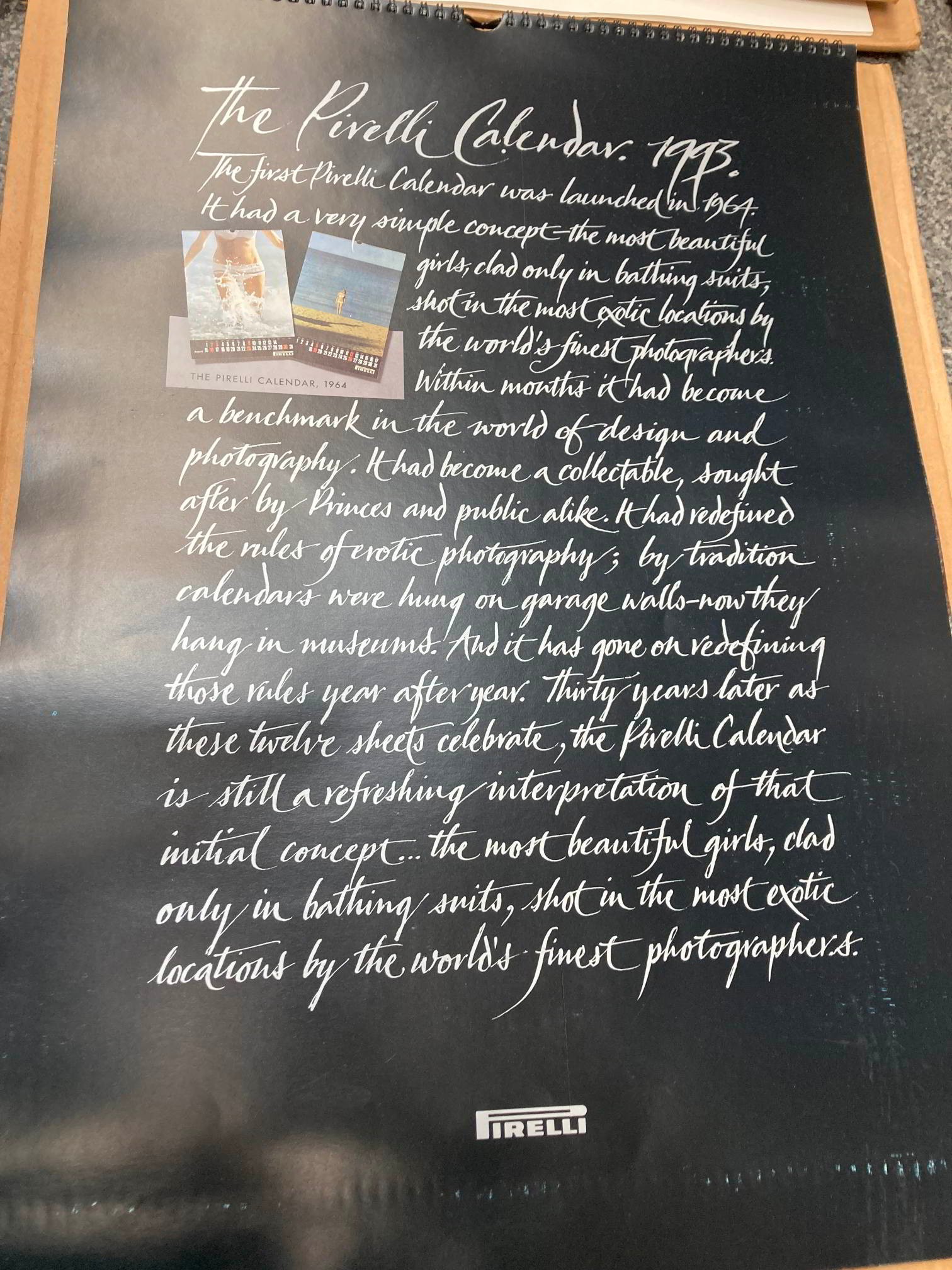 26 Pirelli calendars, 'The Pirelli Calendar Album' book, '1964-2005 Backstage Pirelli' book & Playboy 2011 calendar (Calendar dates & any duplicates as follows 1984, 86 x2, 87 x2, 89 x2, 88 x2, 90 x2, 91 x2, 92 x2, 93 x2, 94 x2, 95, 96, 97, 98, 2002, 03, 04)