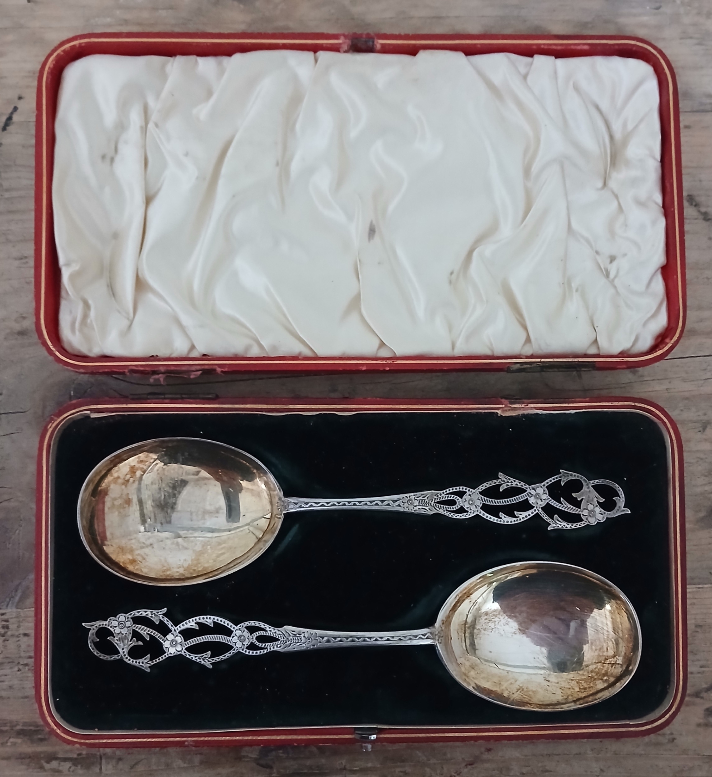 A pair of late Victorian silver anointment type spoons, Atkin Brothers, Sheffield 1896, weight 120g.