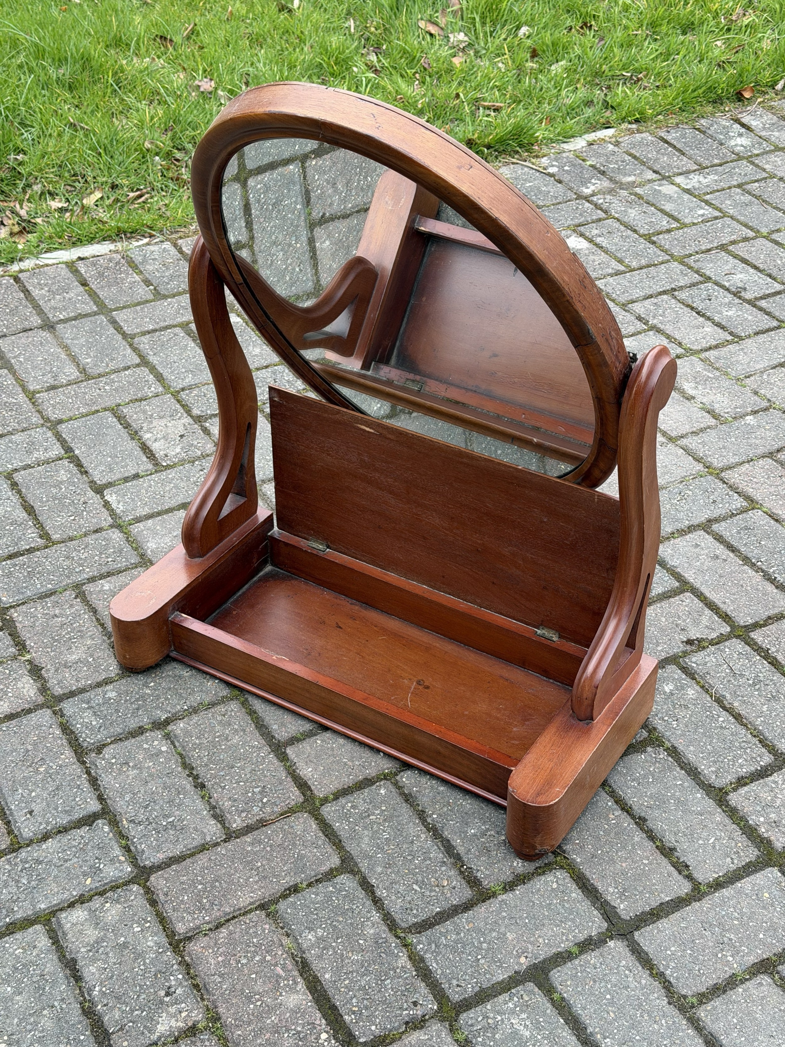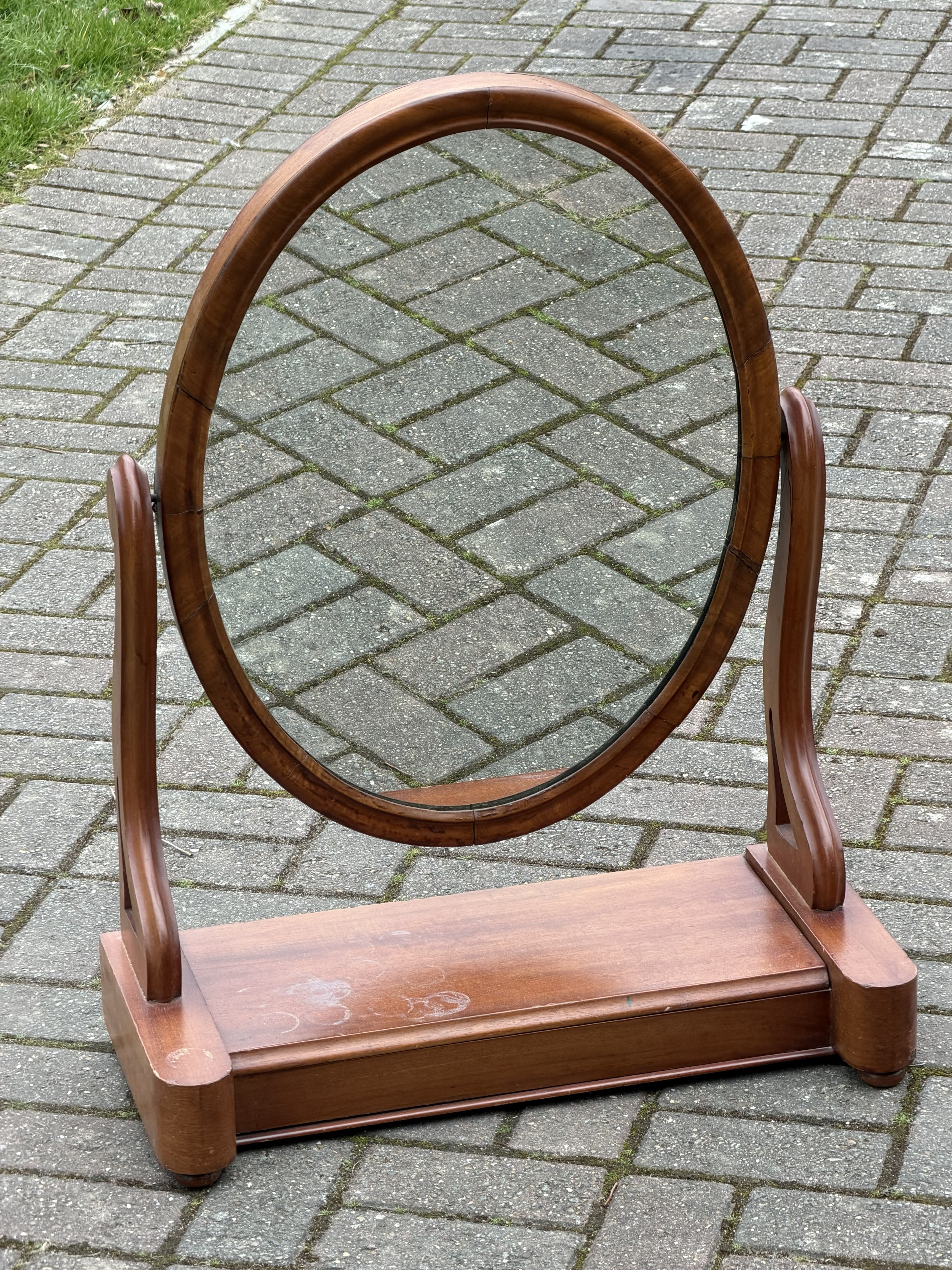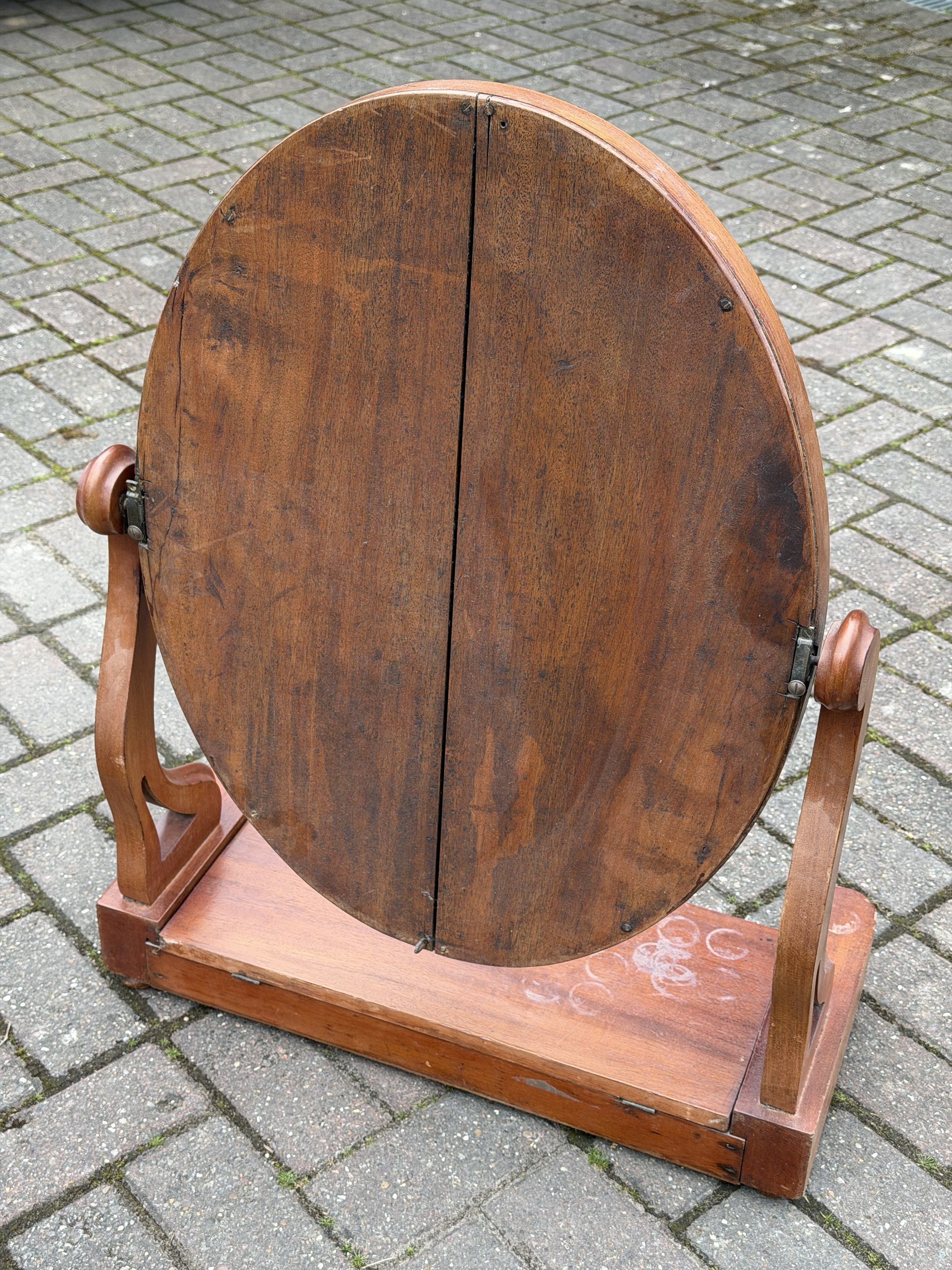A 19th Century walnut oval swing toilet mirror with hinged t...