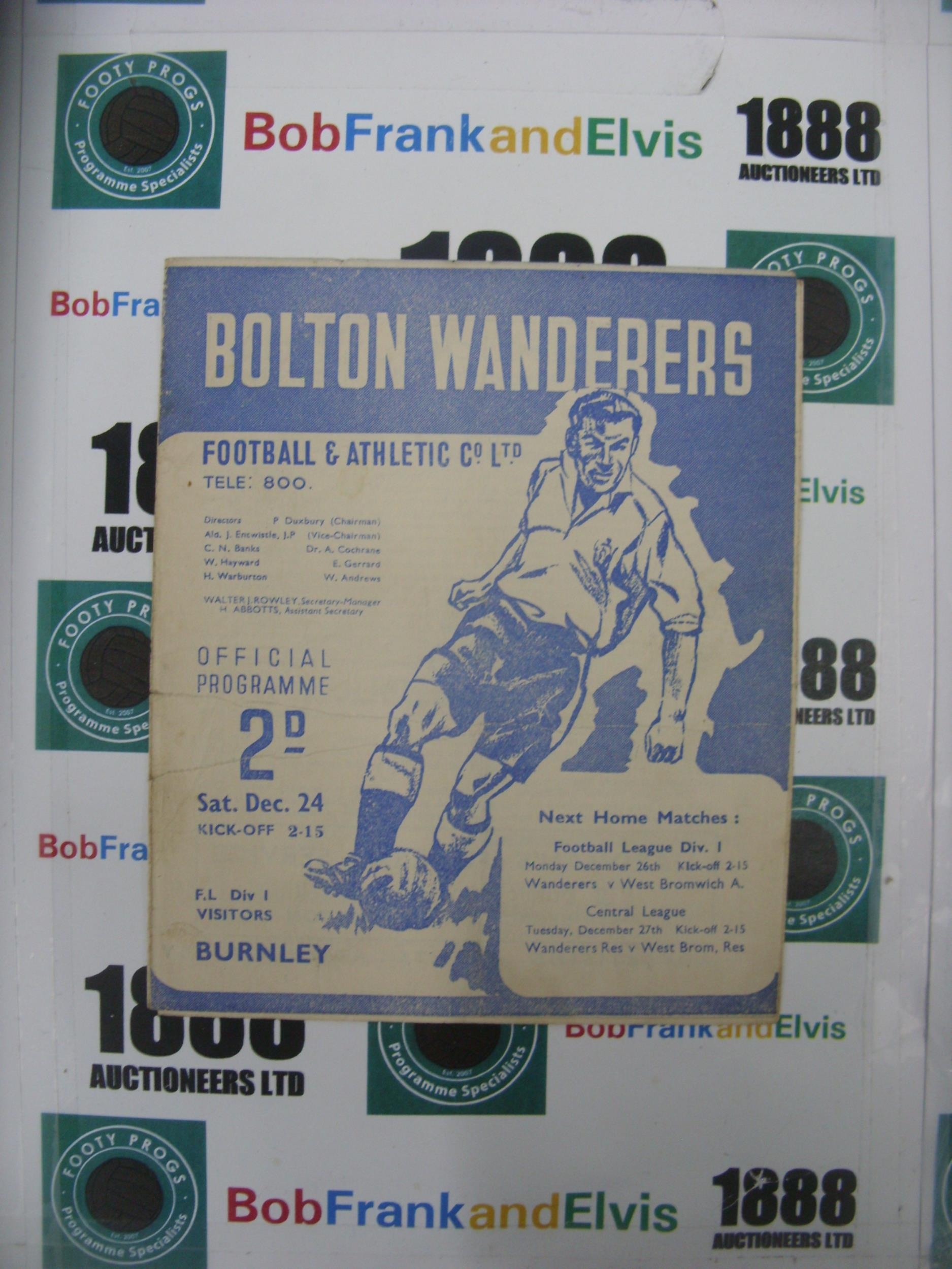 BOLTON WANDERERS, 1949/1950, a football programme from the game versus Burnley, played on 24/12/1949 (folded).