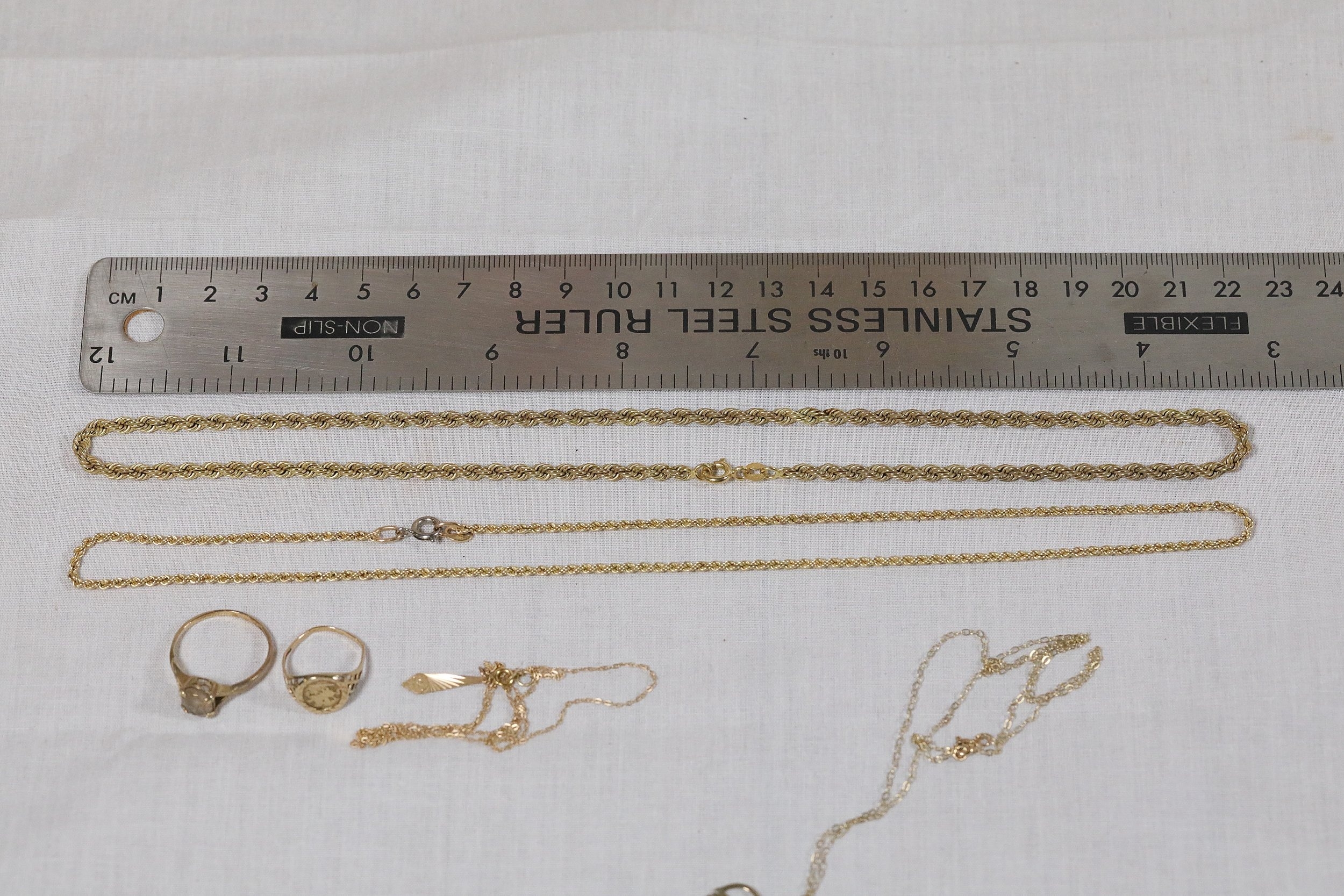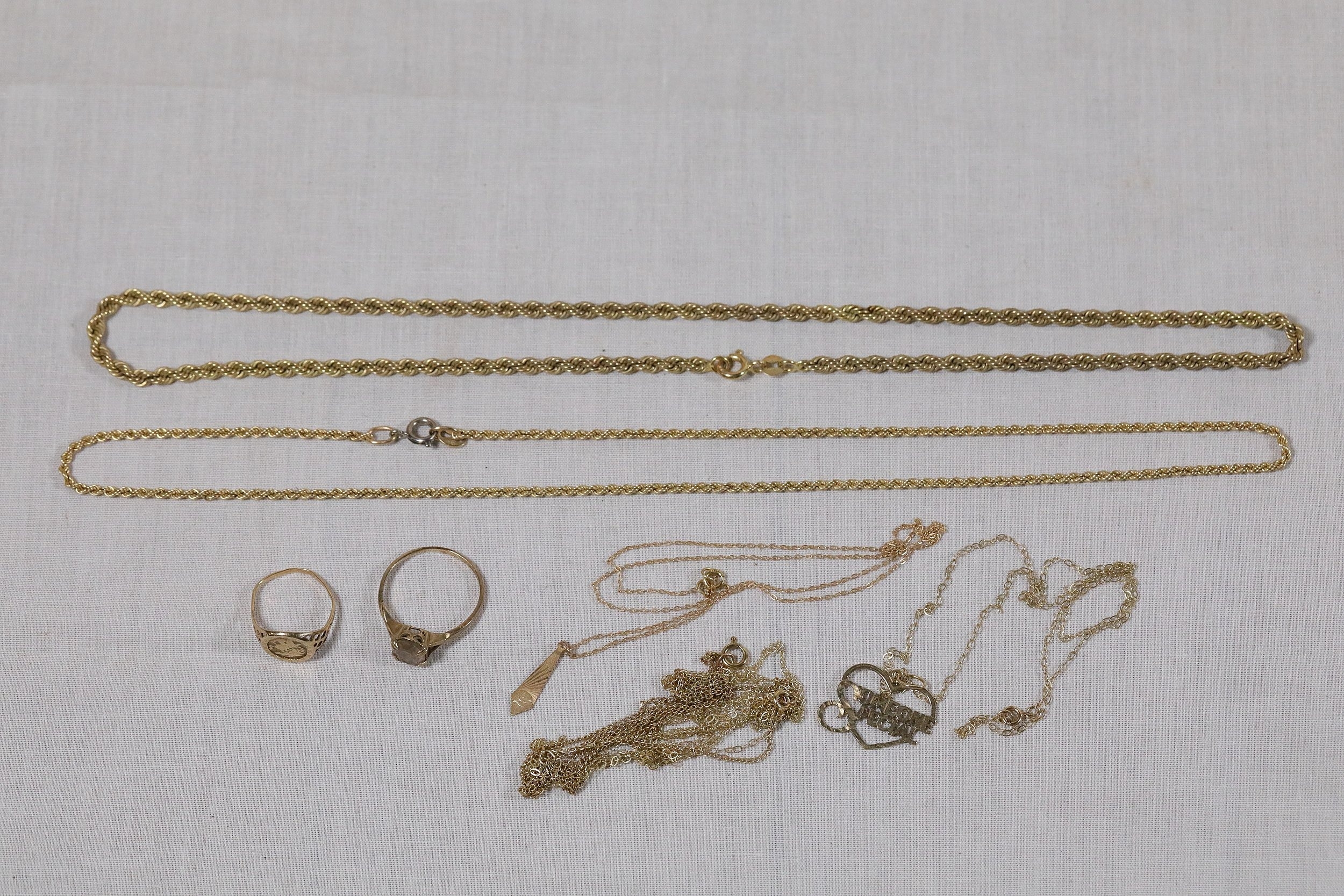 Collection of Gold Chains, Rings and Pendants, 13g all 9ct