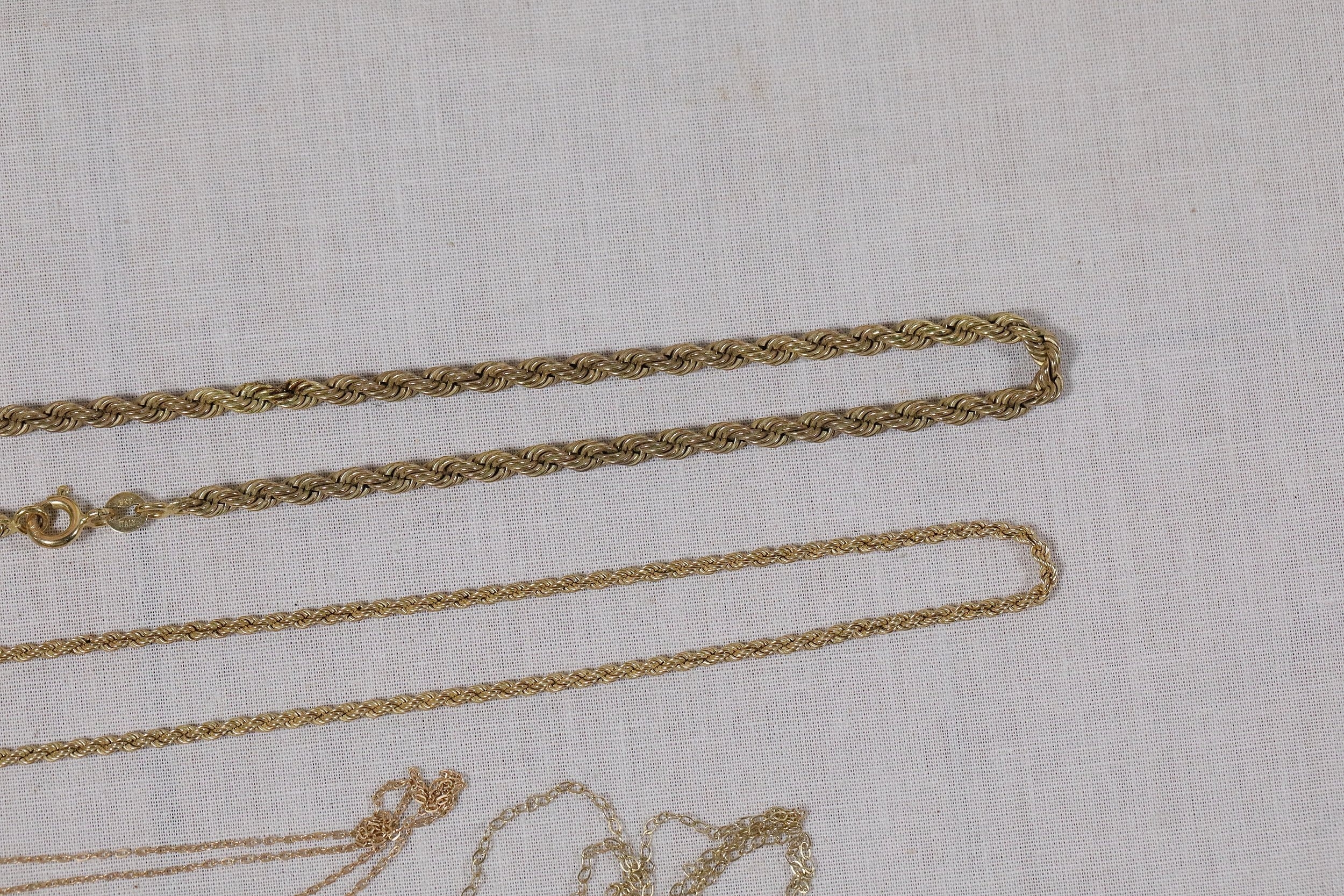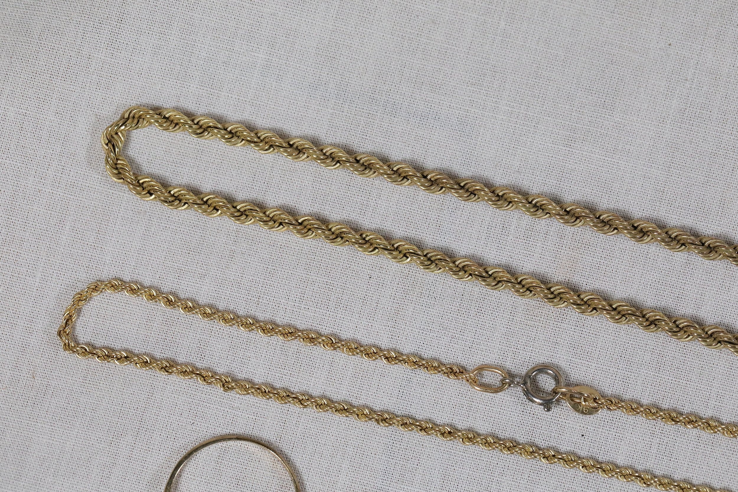 - 9K rope chain with 9K tag and spring ring clasp, together with additional fine link and twist link chains