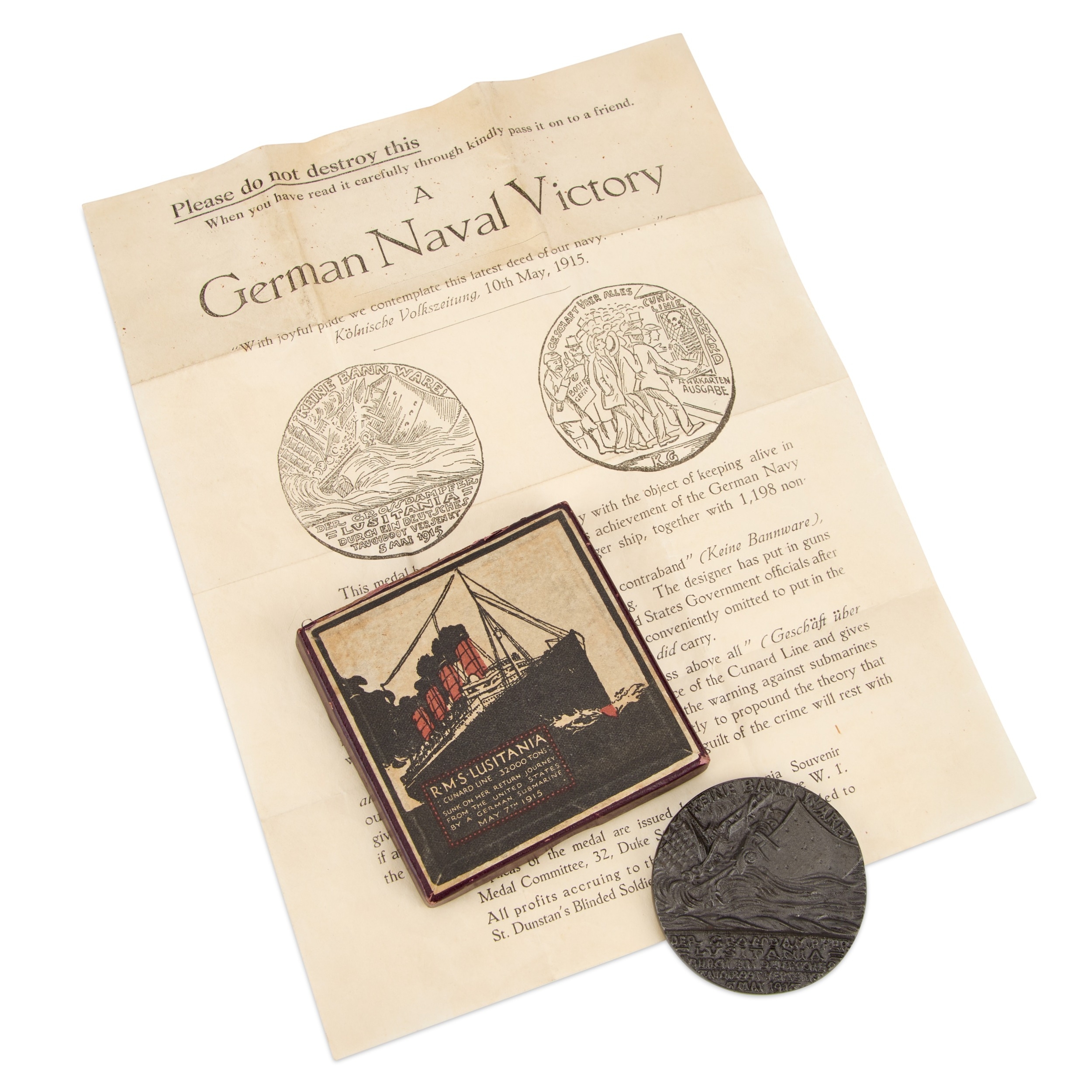 A FIRST WORLD WAR BOXED RMS LUSITANIA MEDAL AND LEAFLET