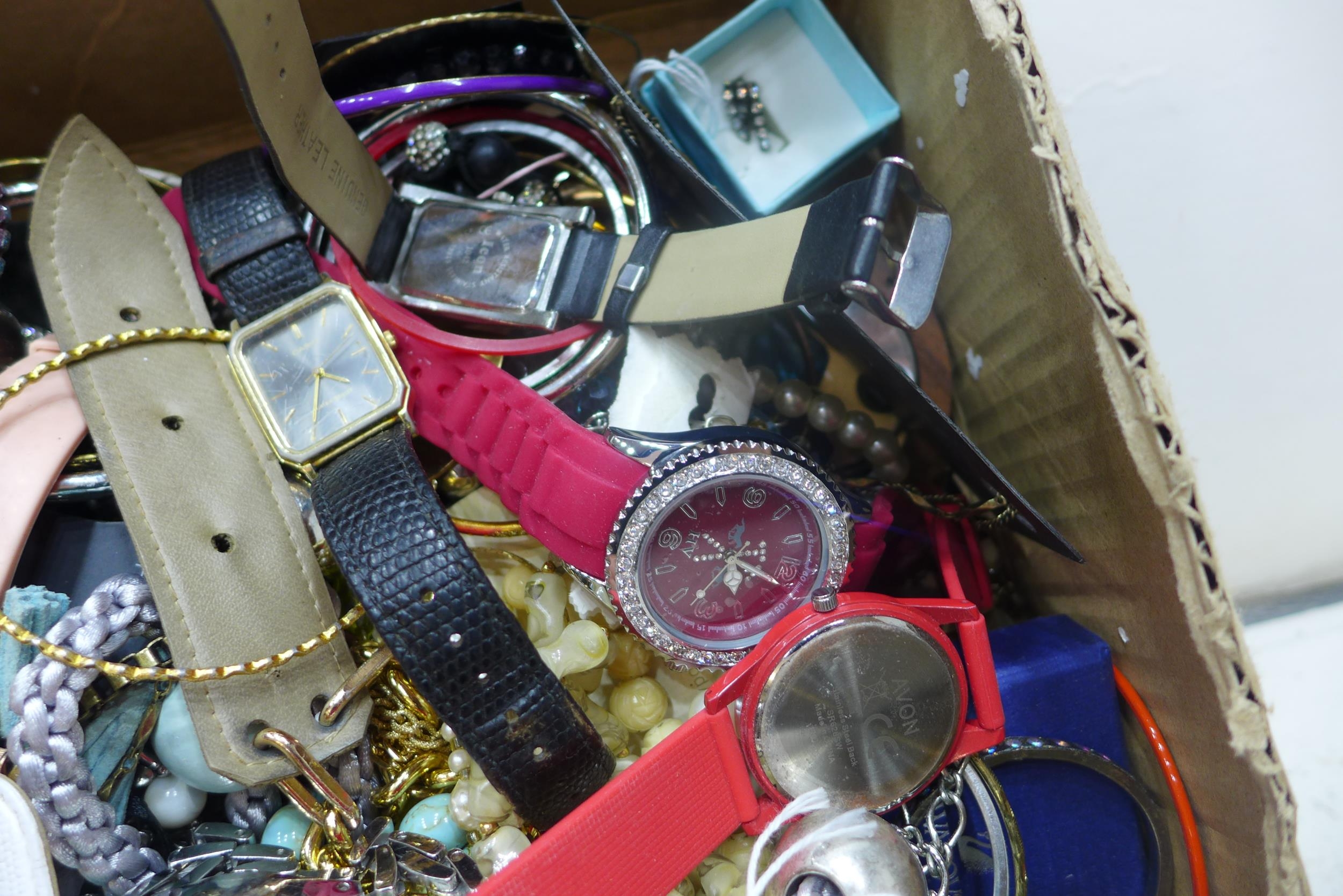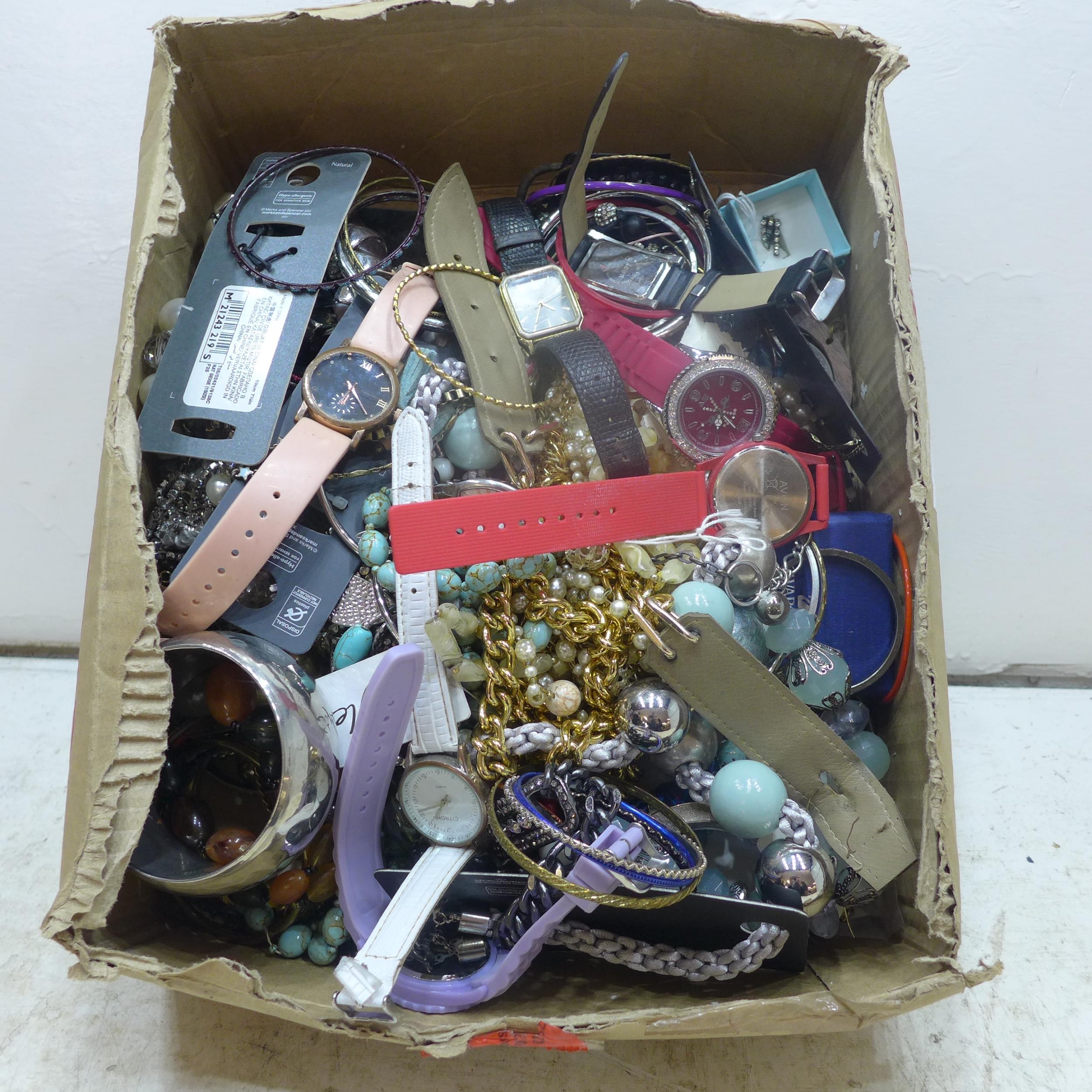 Box of assorted jewellery & watches