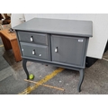 A good sized charcoal grey console table. With attractive sabre legs and white tear-drop handles.