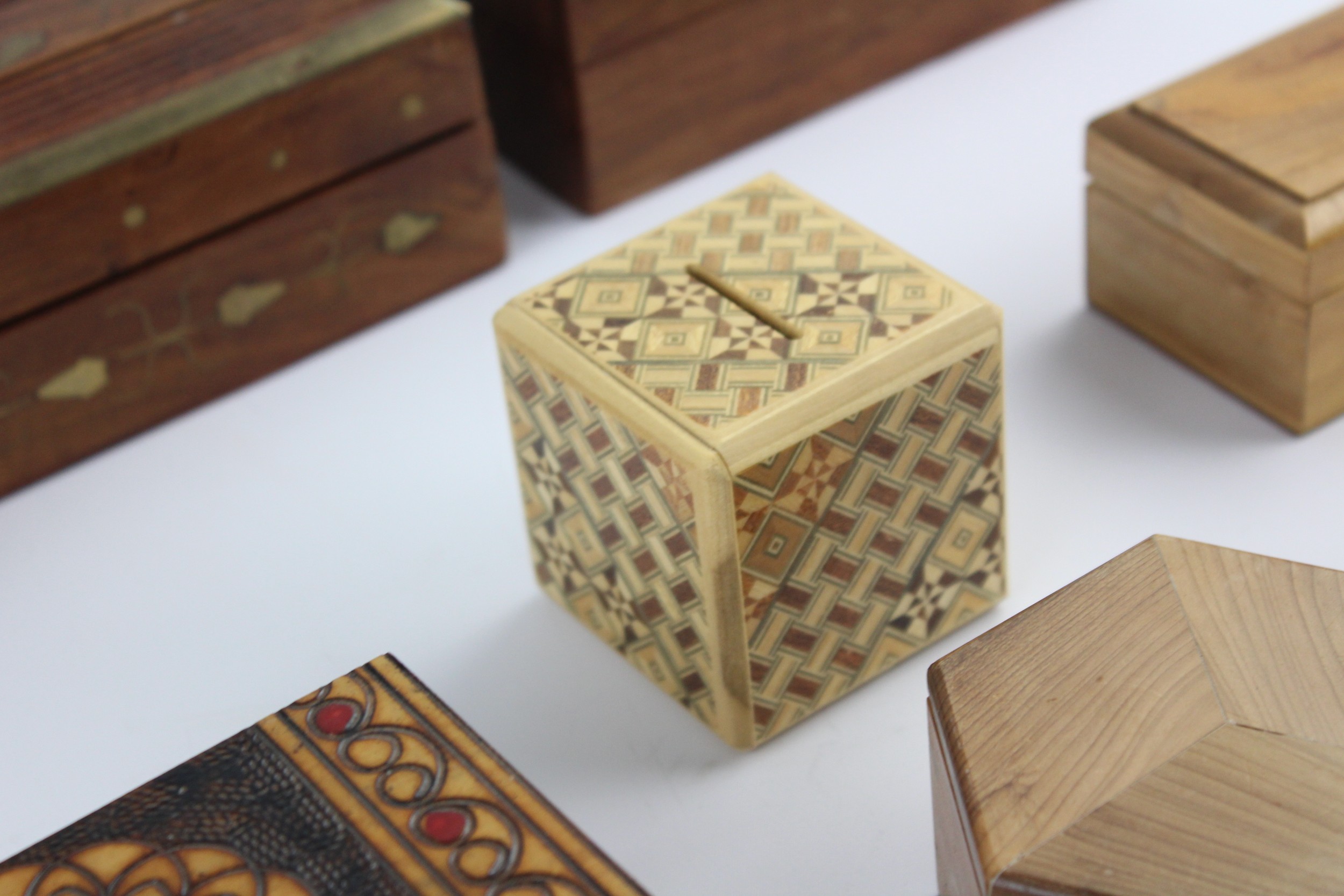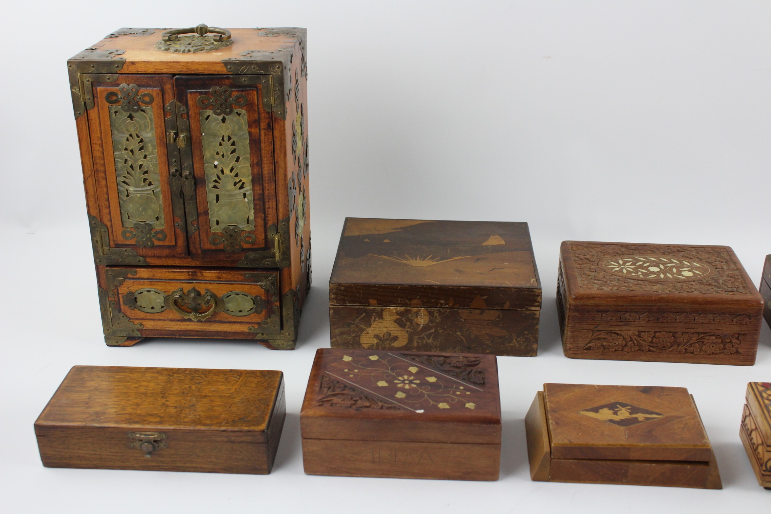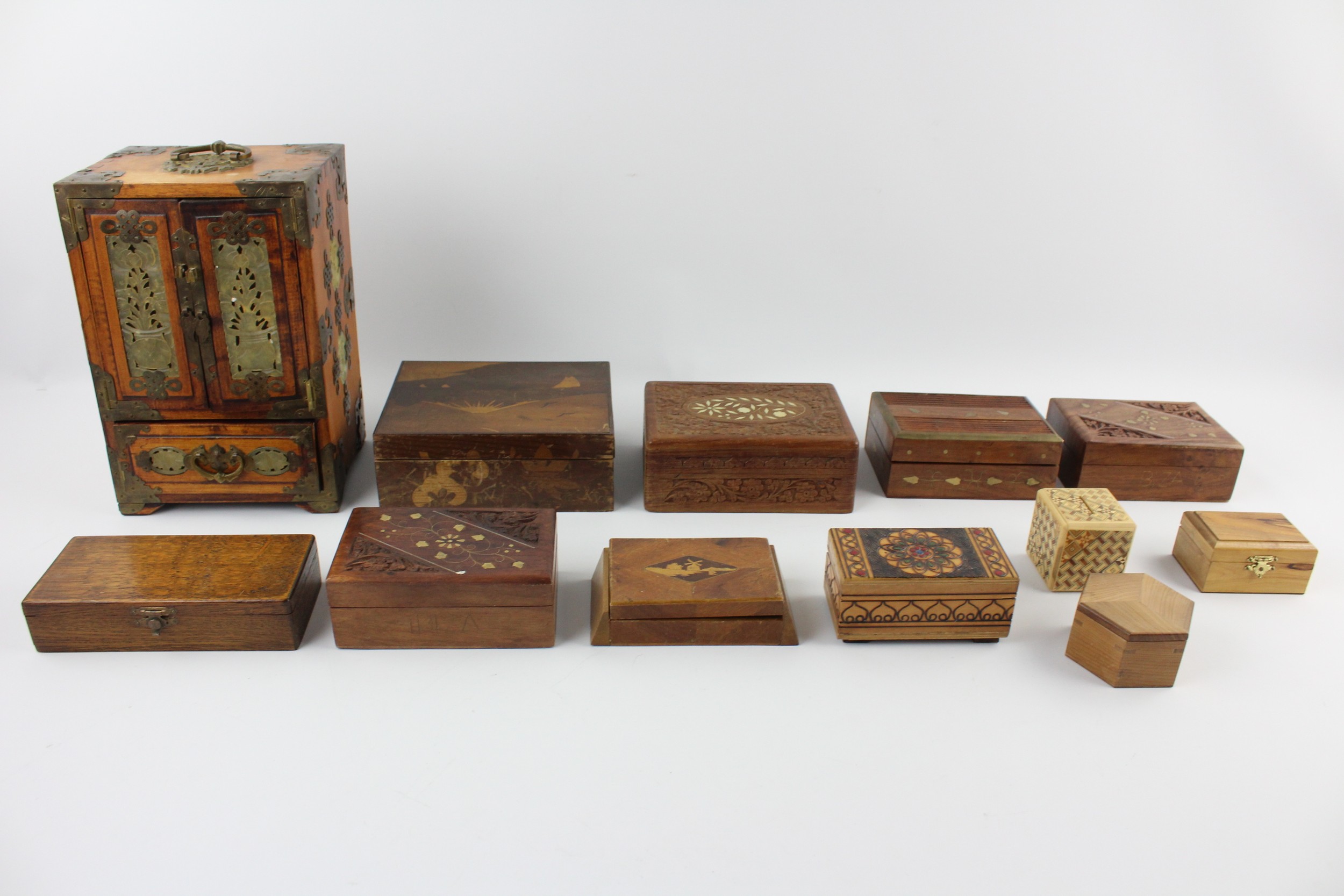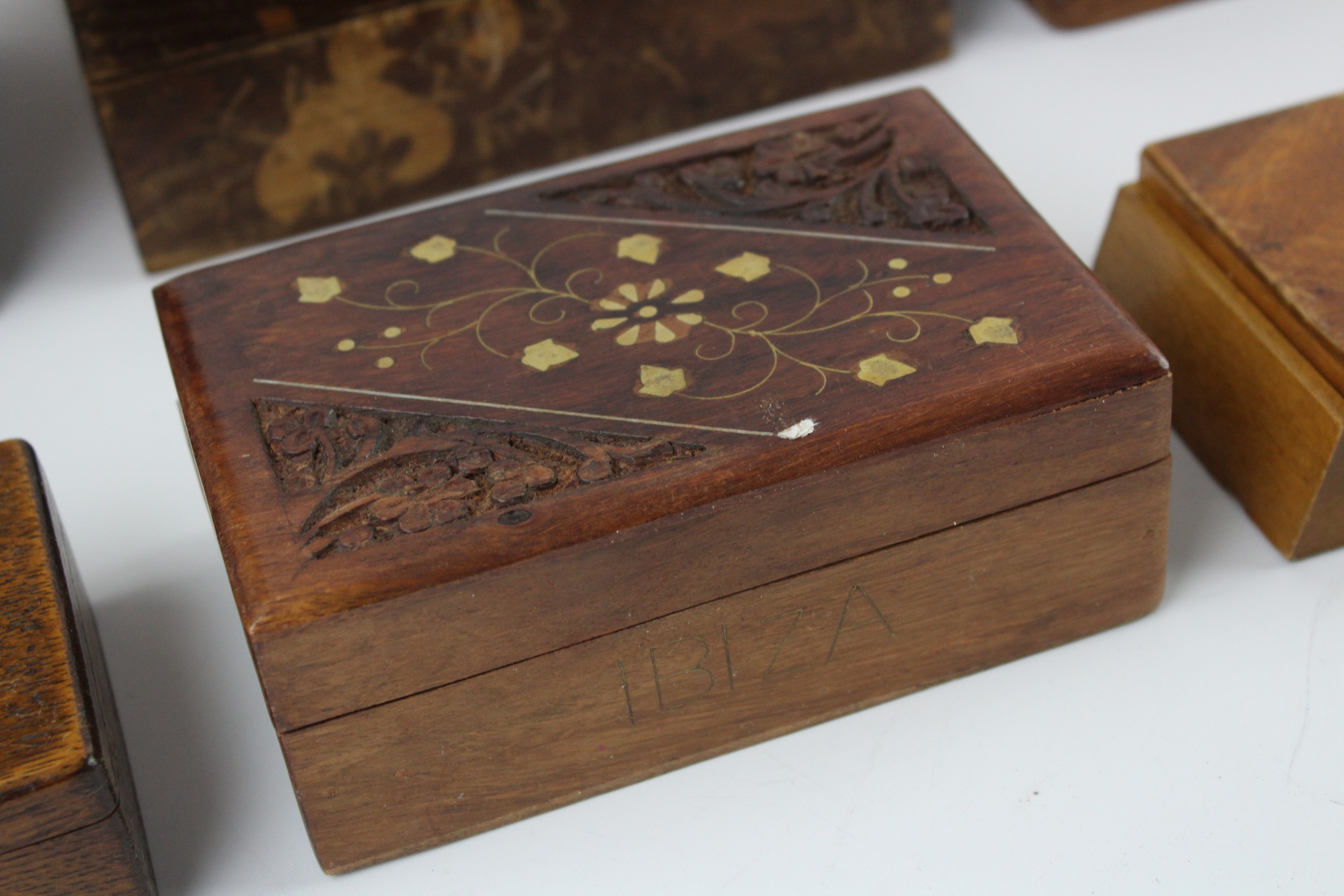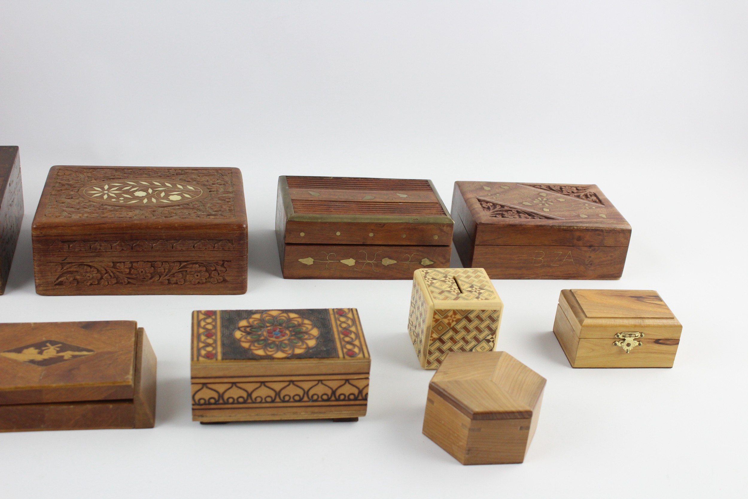 12 x Assorted Vintage Decorative WOODEN BOXES Includes Jewellery, Souvenir, Brass Etc