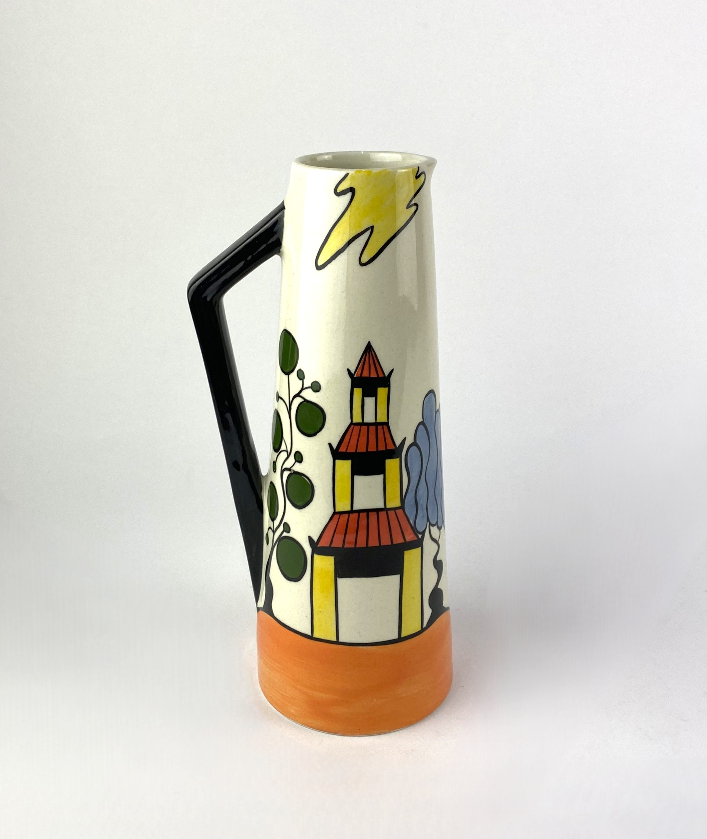 A Lorna Bailey 'Pagoda Garden' pattern tall jug 21cm high