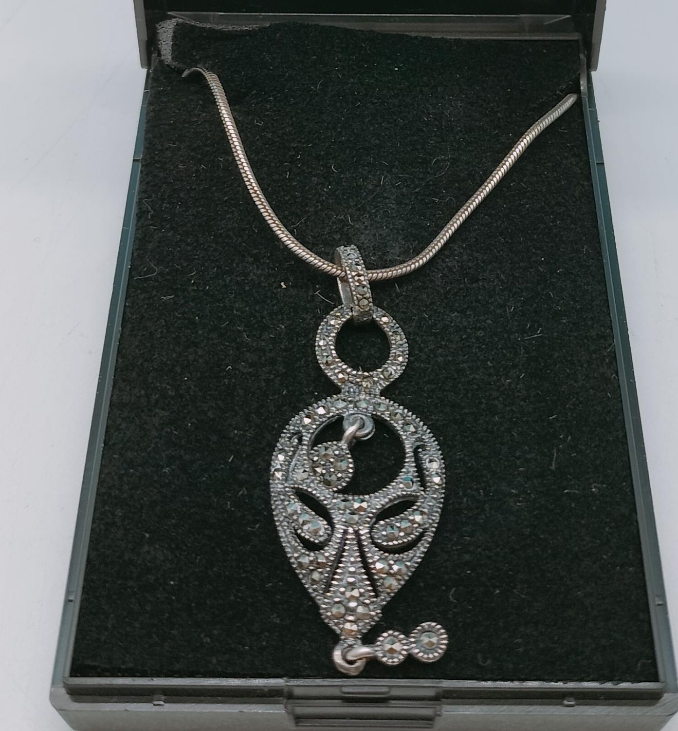 Art Nouveau Marcasite Dropper Pendant on 925 Silver Chain.
