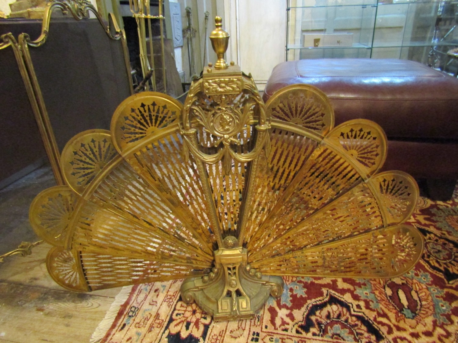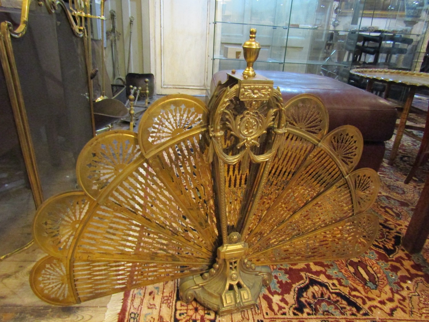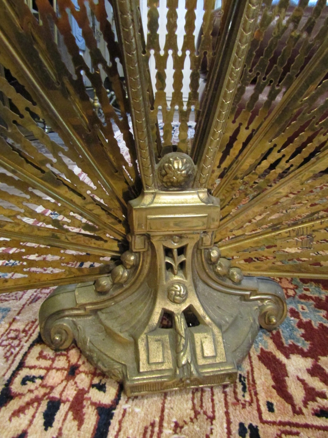 Antique Cast Brass Peacock Motif Fan Tail Fire Guard Full Size