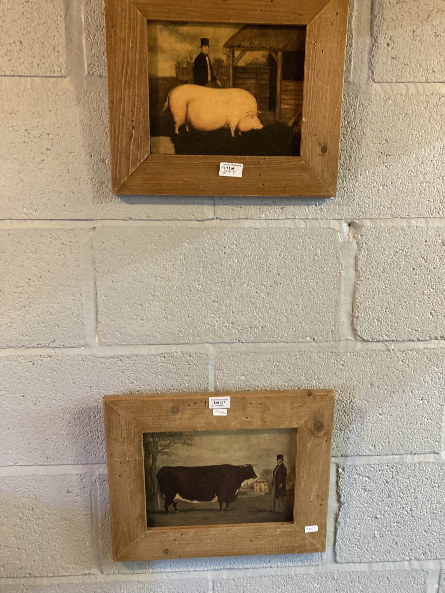 2 pine framed livestock prints 33 x 40cm