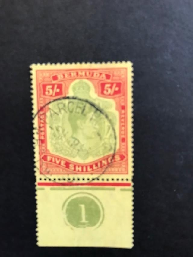 Bermuda 1938-53 5/- broken top right scroll, fine used with control SG 118BD. (1)
