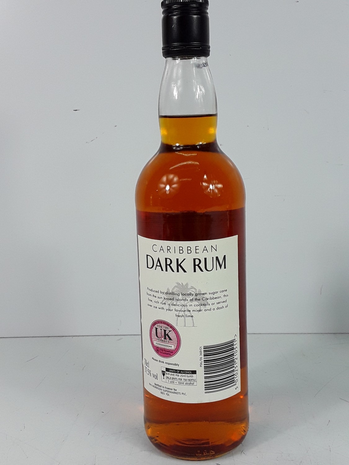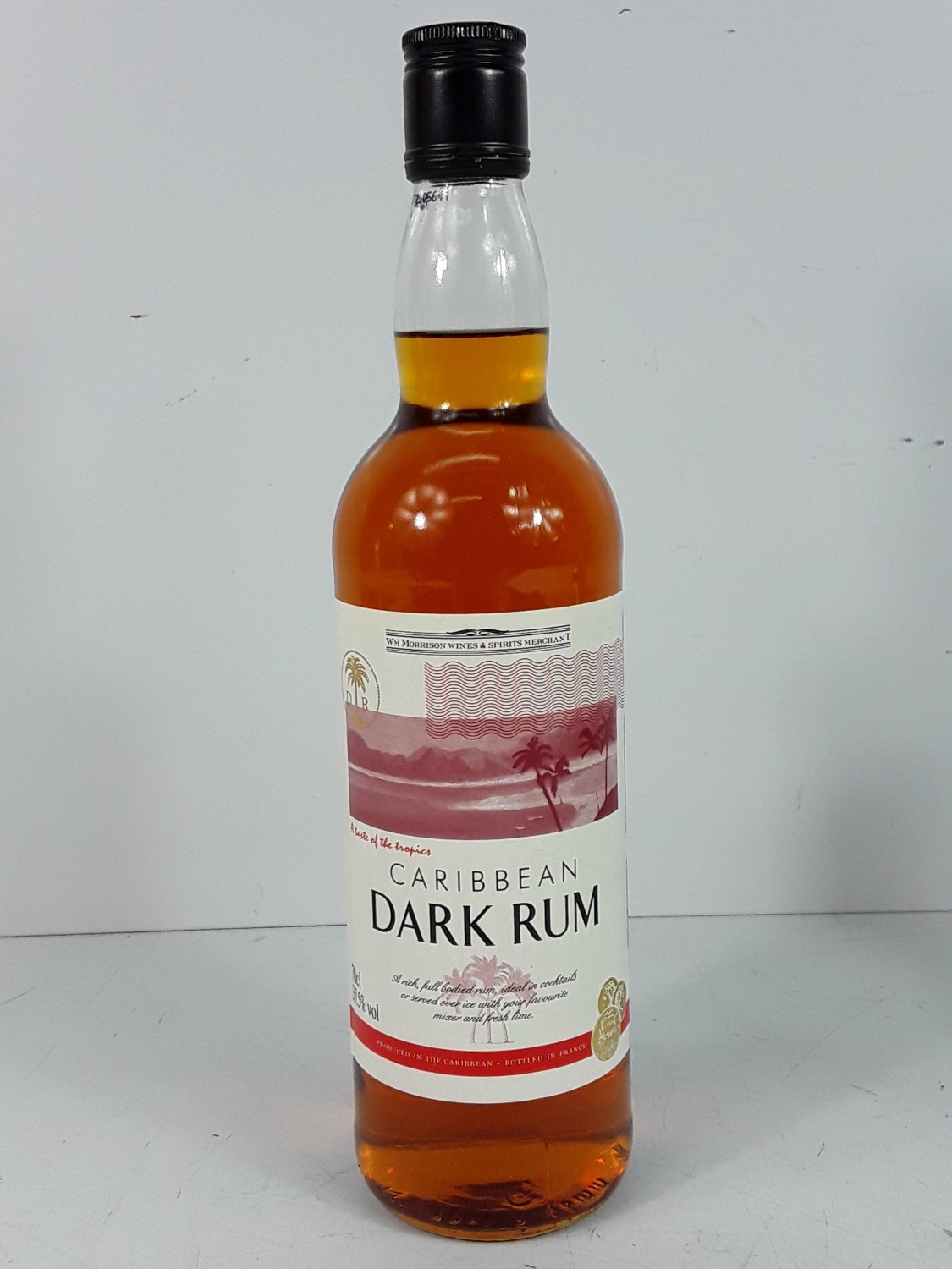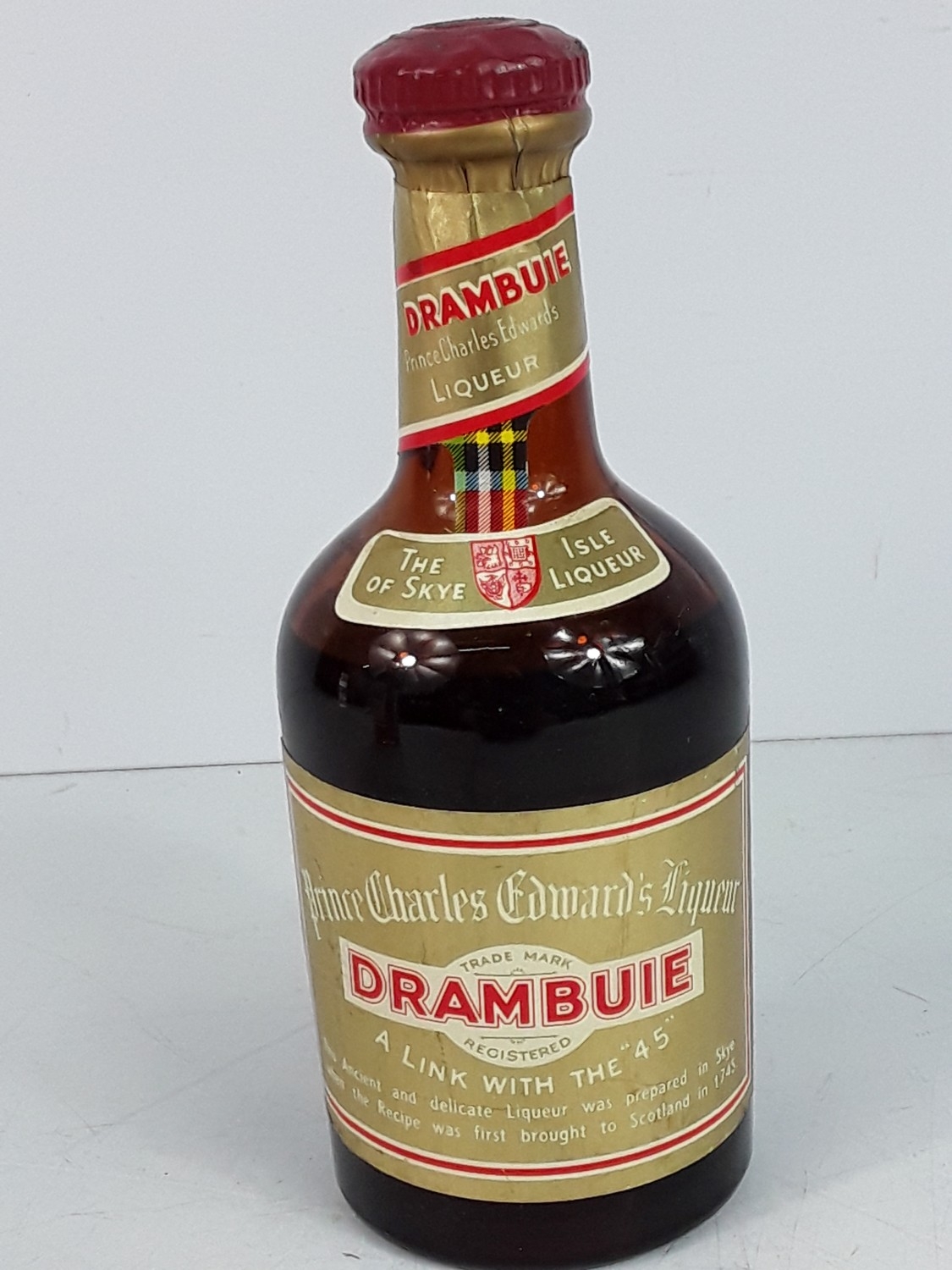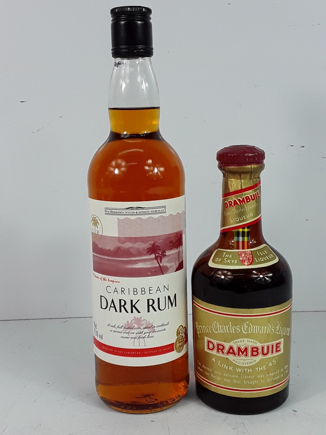 Bottle of Caribbean dark rum and a half bottle of Drambuie