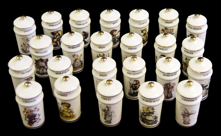 A Large Collection of Seven Ceramic Hummel Spice Jars