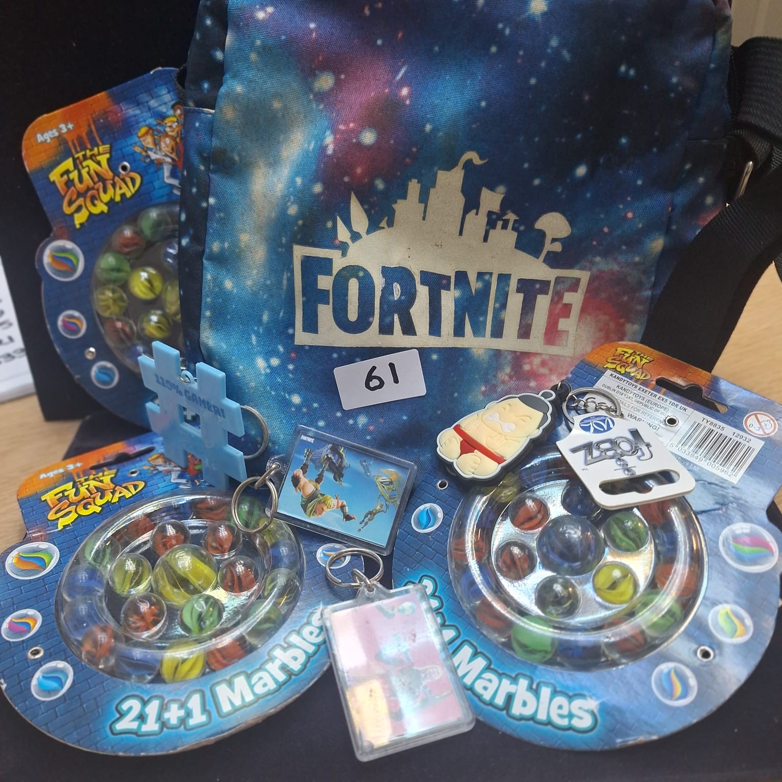 Fortnite Bag With New Marbles x3, Fortnite Keyrings and Games