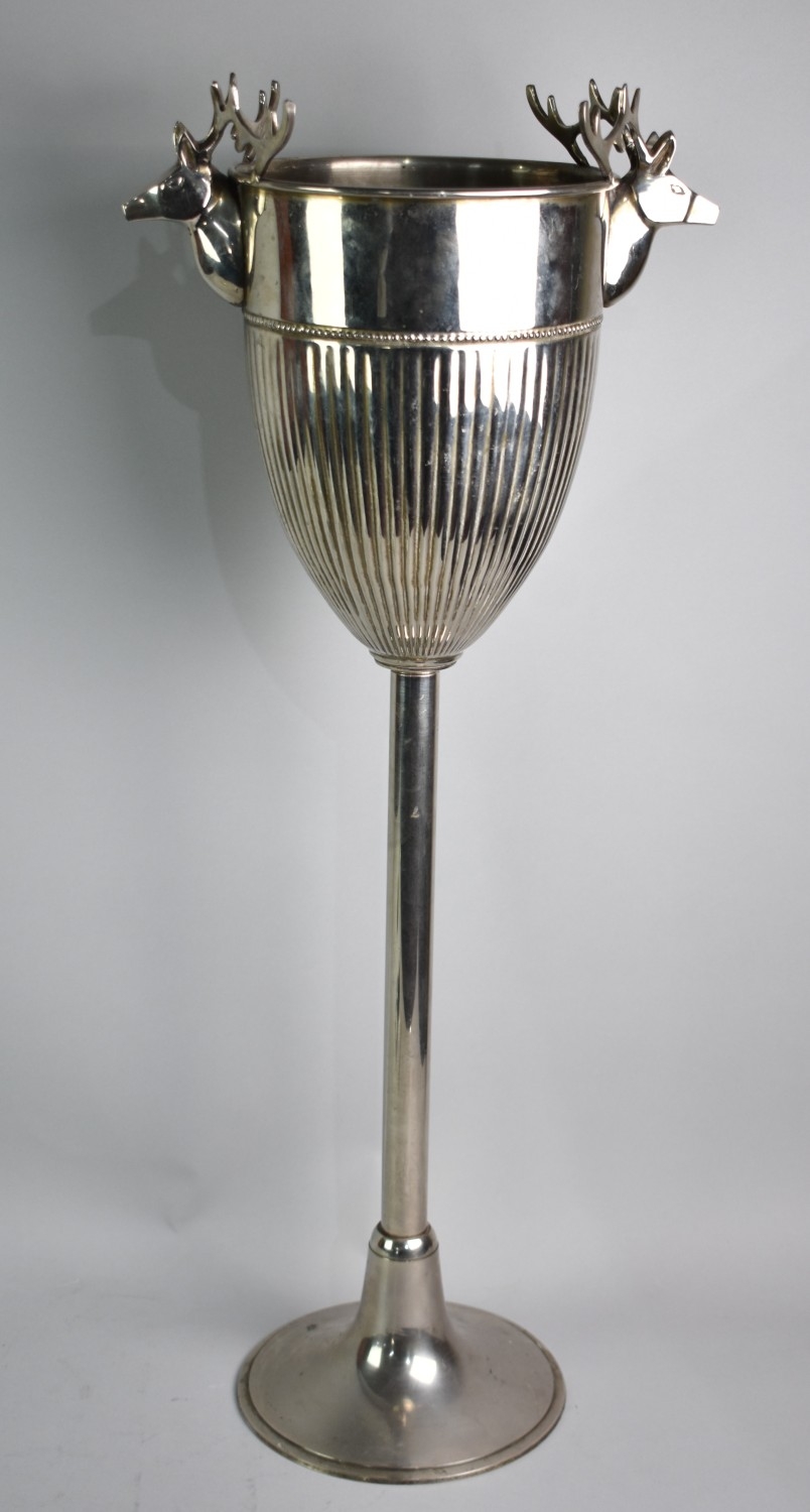 A Vintage Silver Plated Freestanding Wine Cooler with Stags Head Handes, 67cms High