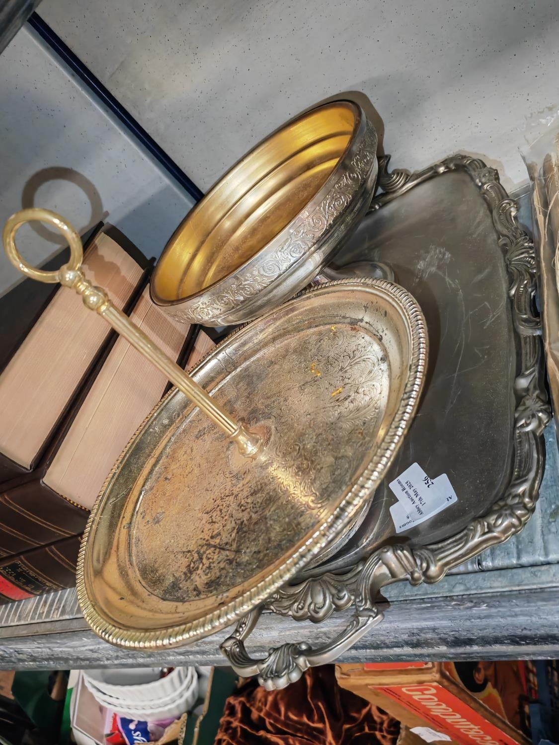 3 Metal And Silver Plated Items, Tray/Bowl Etc