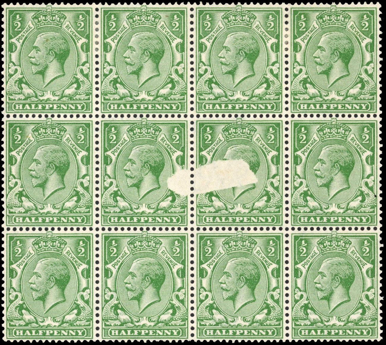 GB 1912���24 Royal Cypher ��d bright green, mint block, central pair showing remarkab
