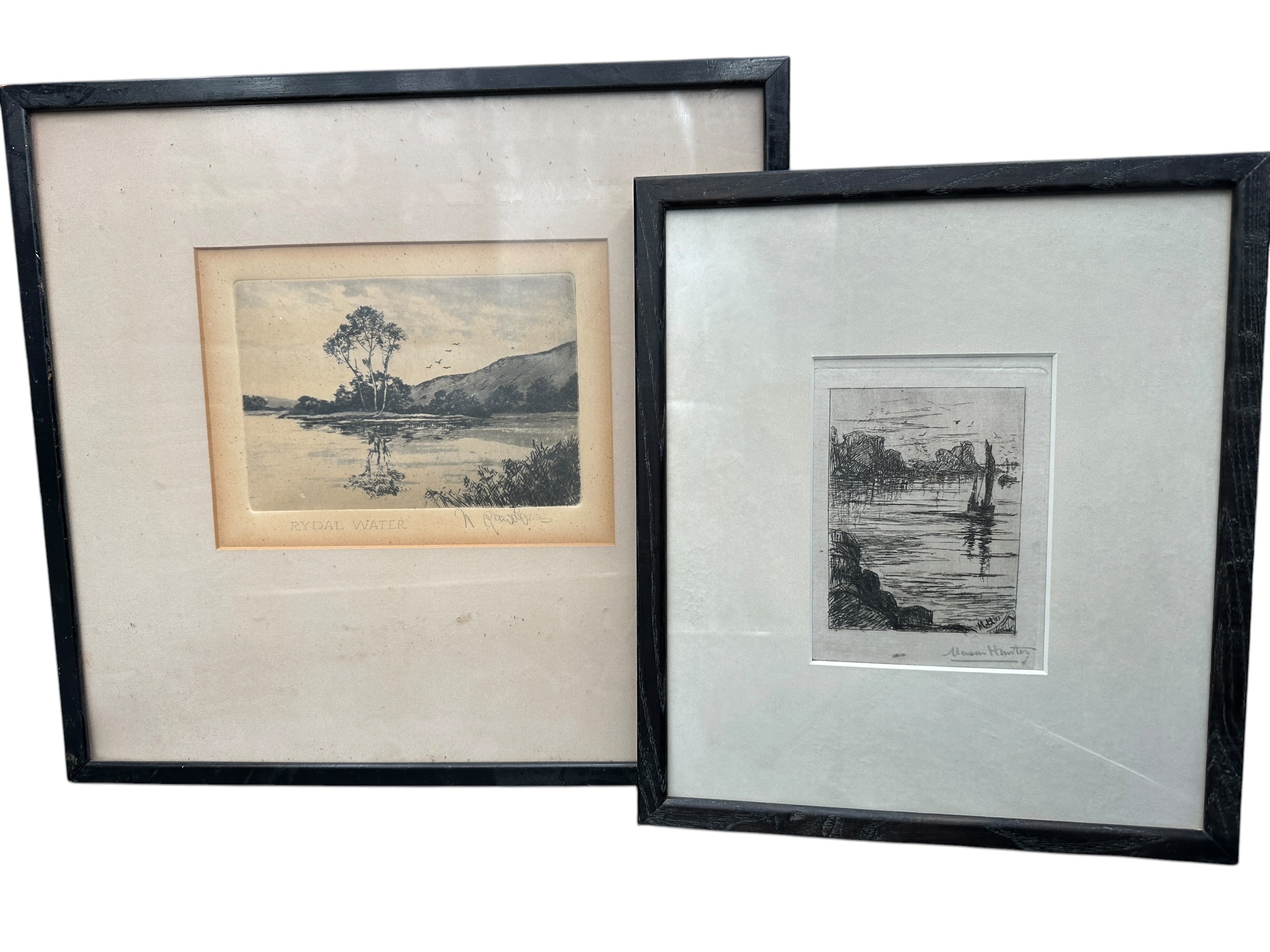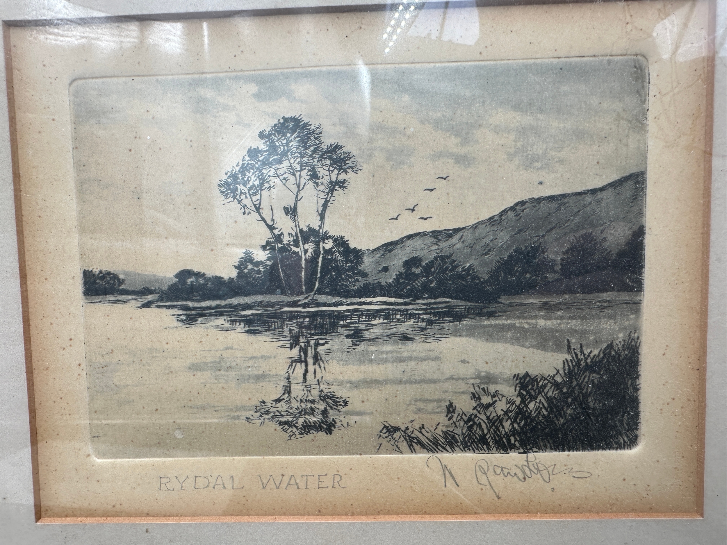 Two Vintage Engravings: Mason Hunter - Nearing The Shore, Coldingham alongside W. Rawlings - Rydal Water