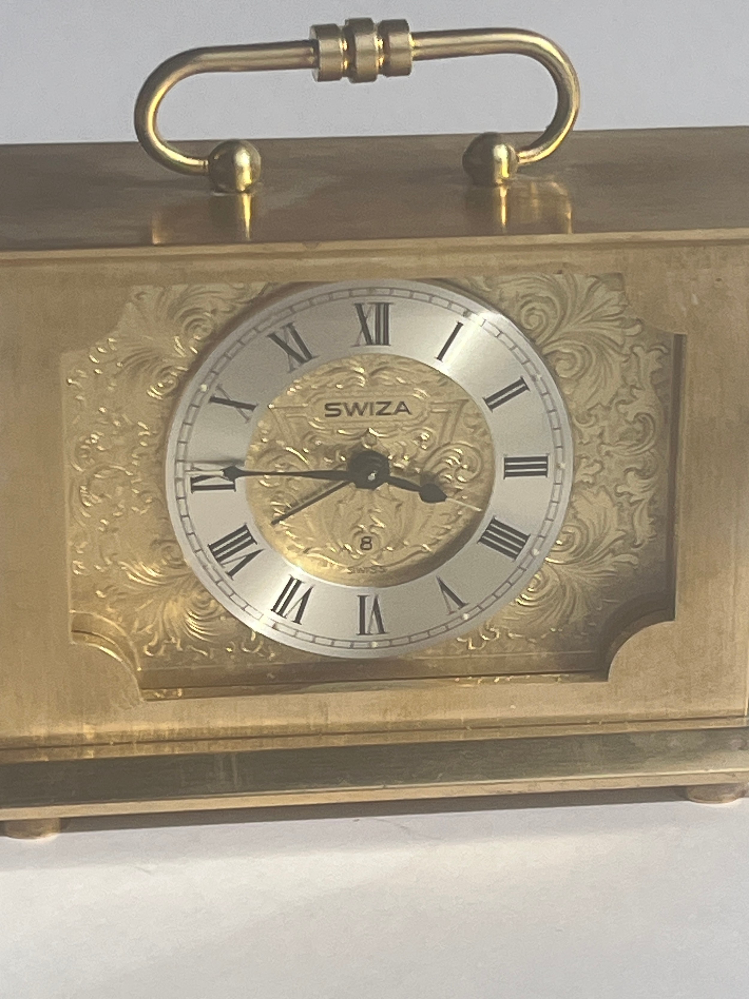 Swiza Brass 8 day carriage clock and alarm working order when lotted