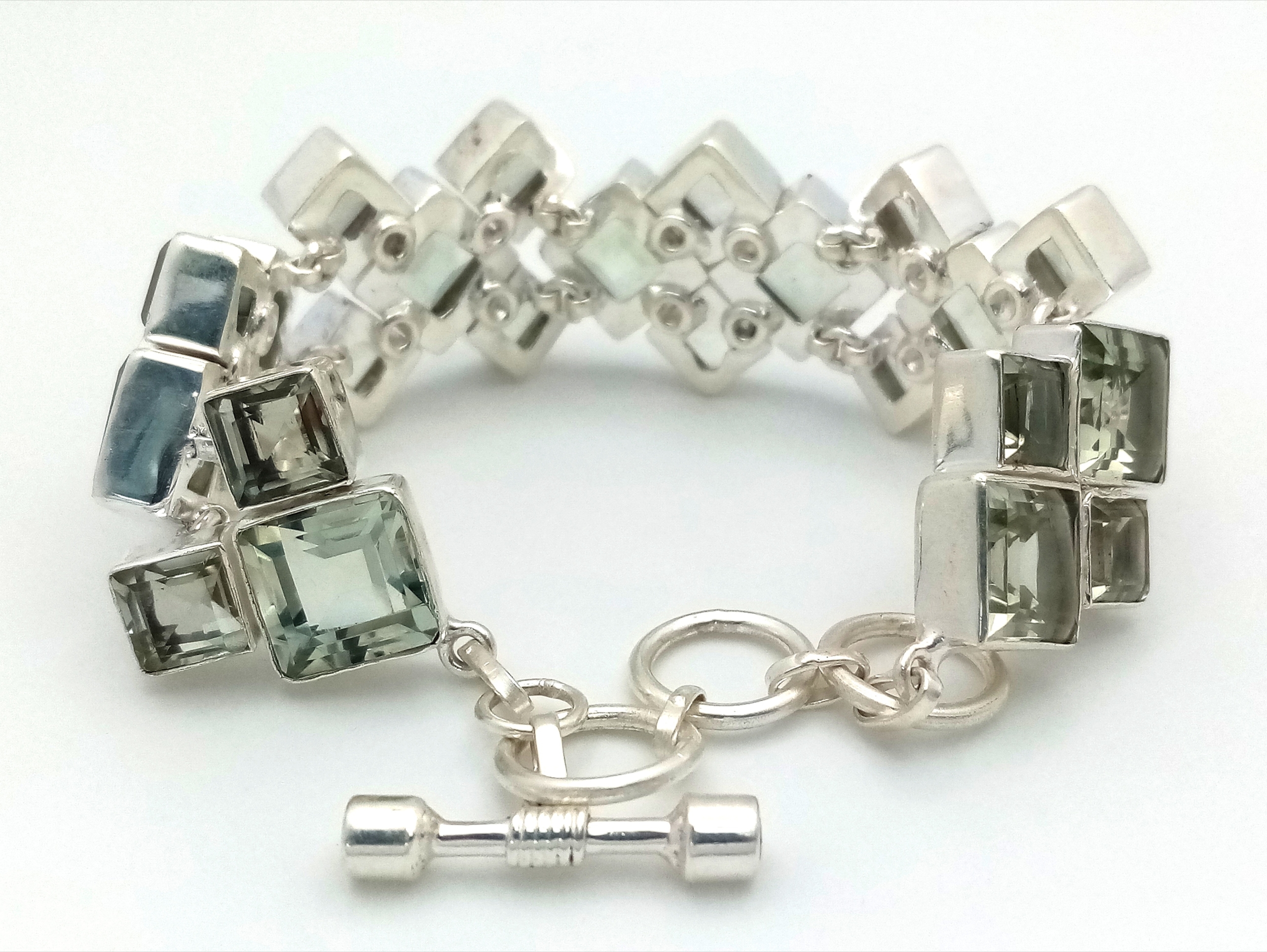 A Green Amethyst Gemstone Link Bracelet. Set in 925 Silver.