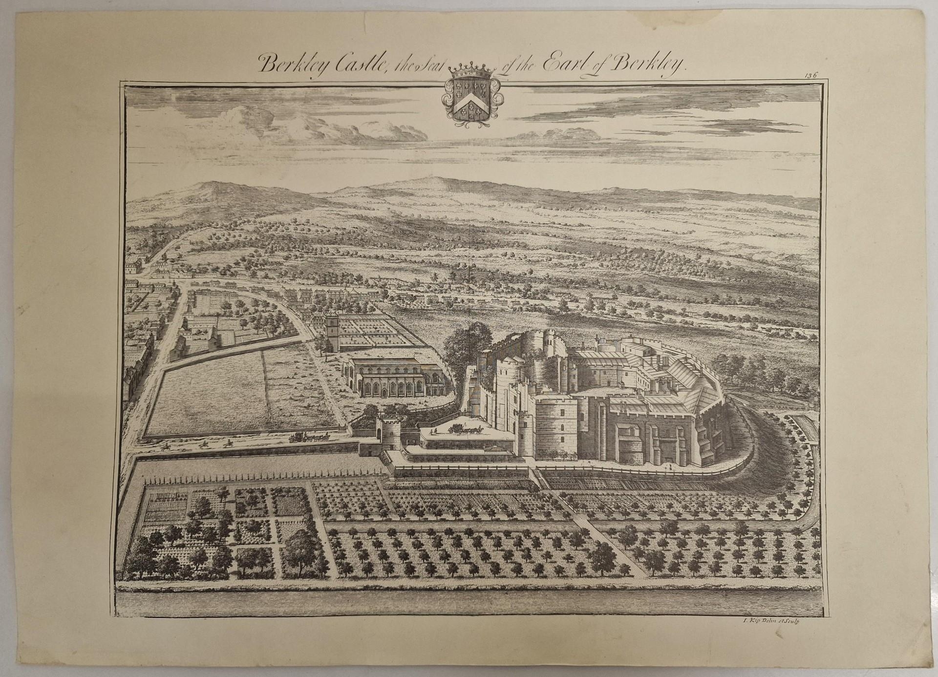 An unframed, antique lithograph of Berkley castle, after Johannes Kip (Dutch 1652-1722). Dimensions 37cm x 51cm.