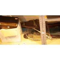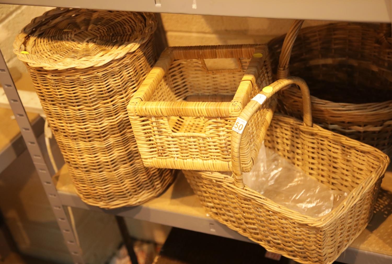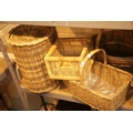Two wicker handled baskets plus a wicker lidded bin. This lot is not available for in-house P&P.